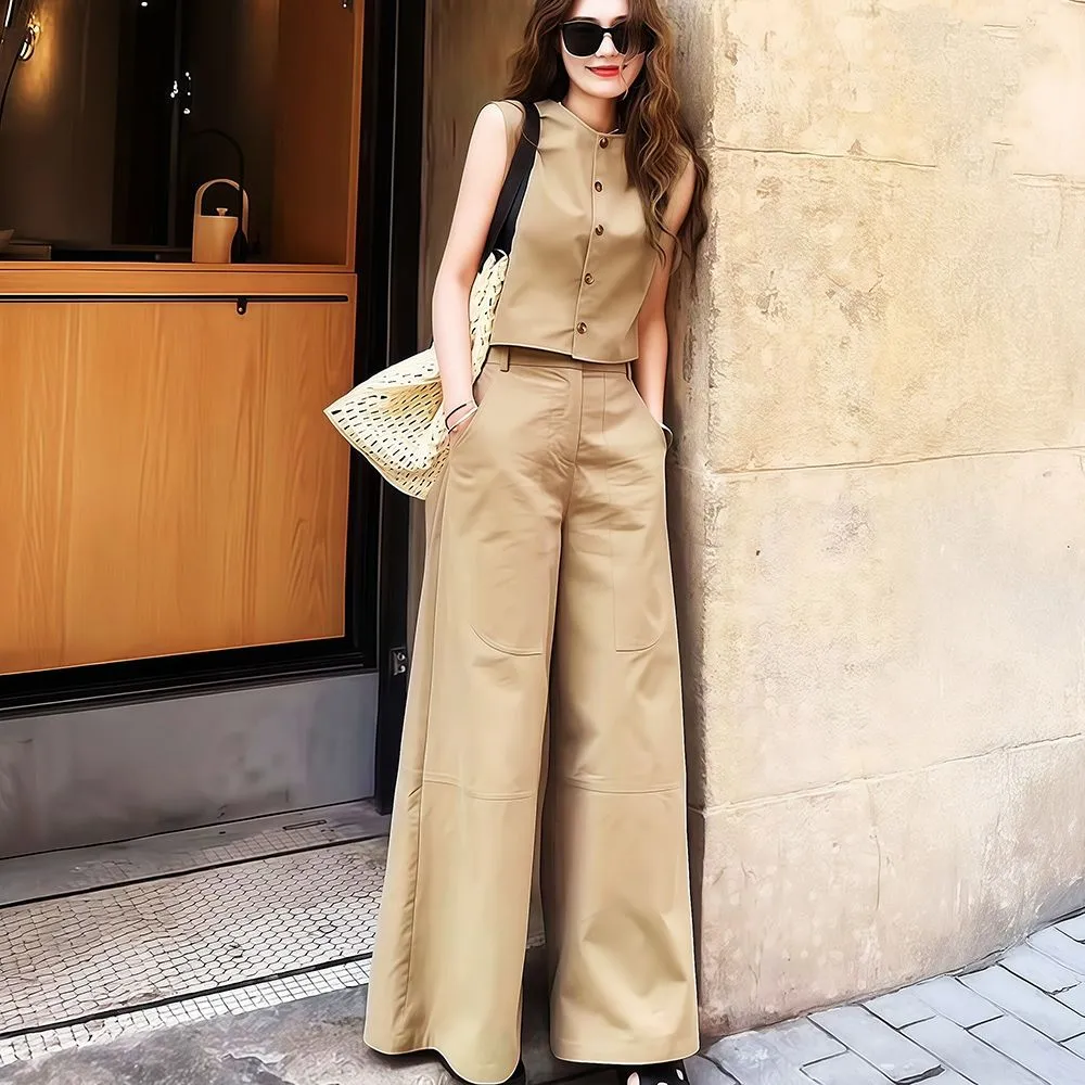 【單件/套裝】極簡設計兩穿無袖背心+寬鬆闊腿褲兩件套裝