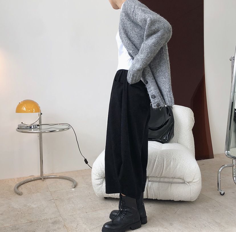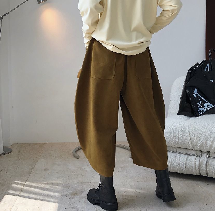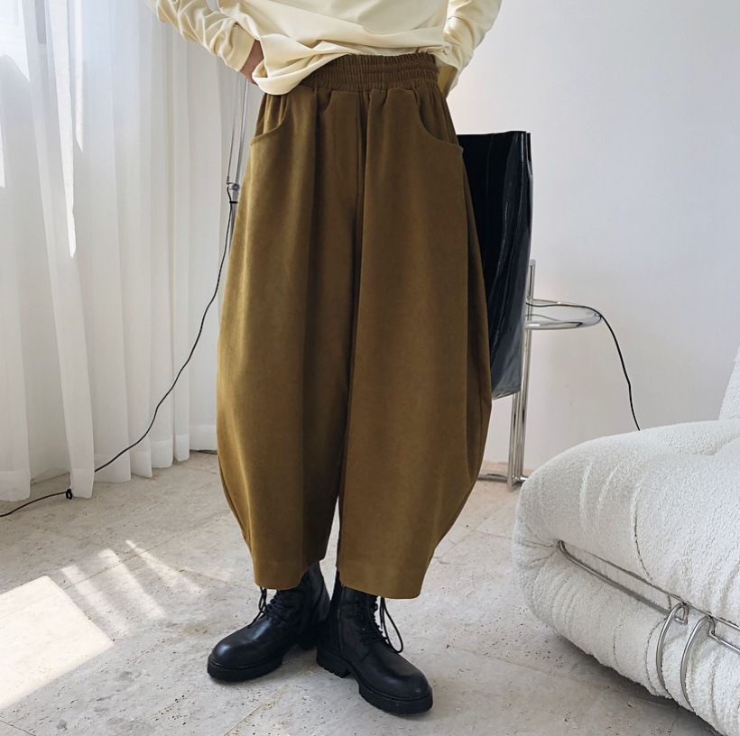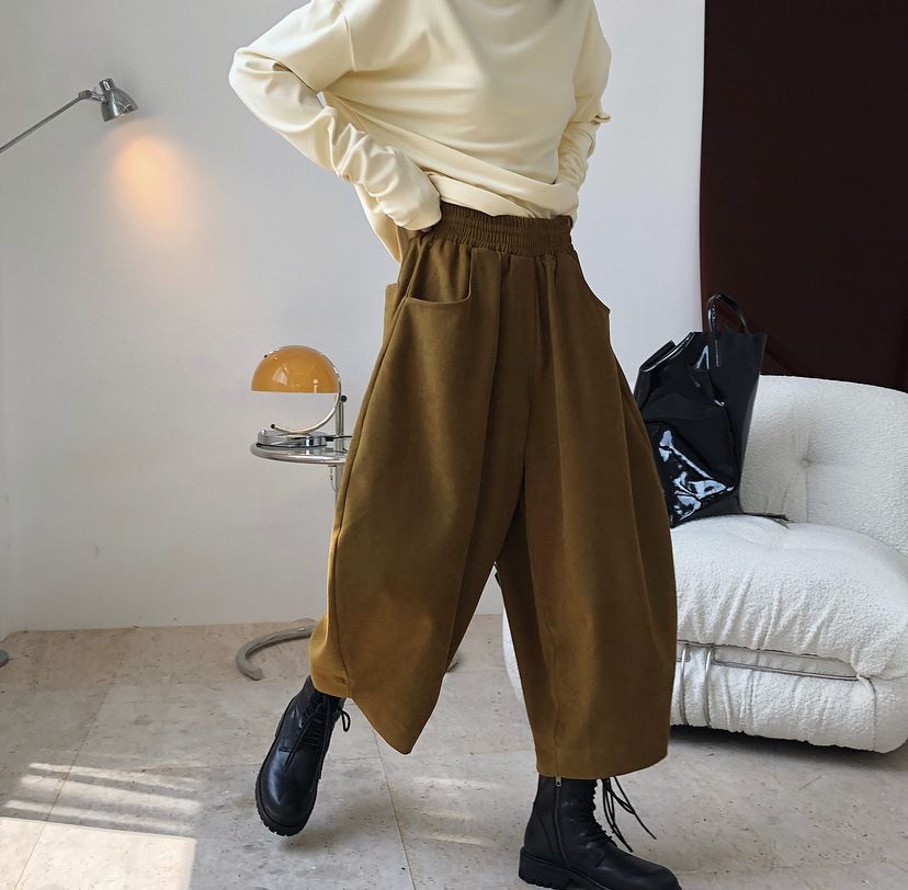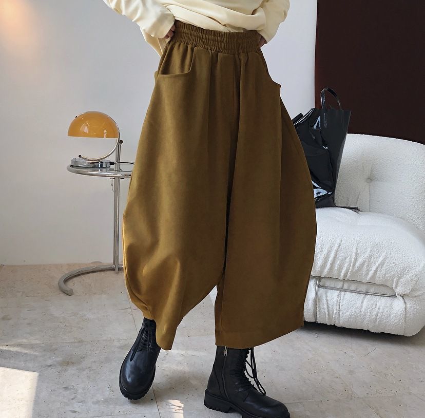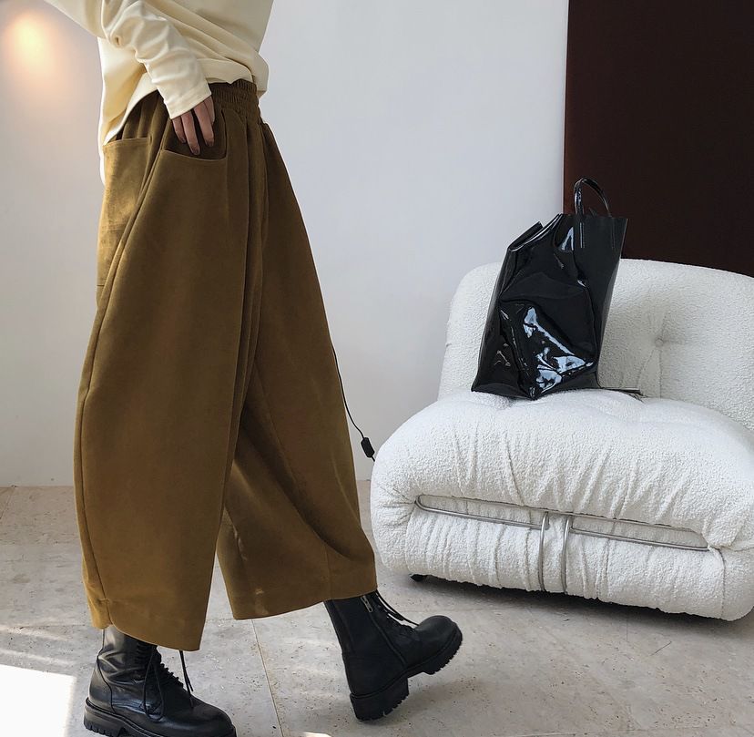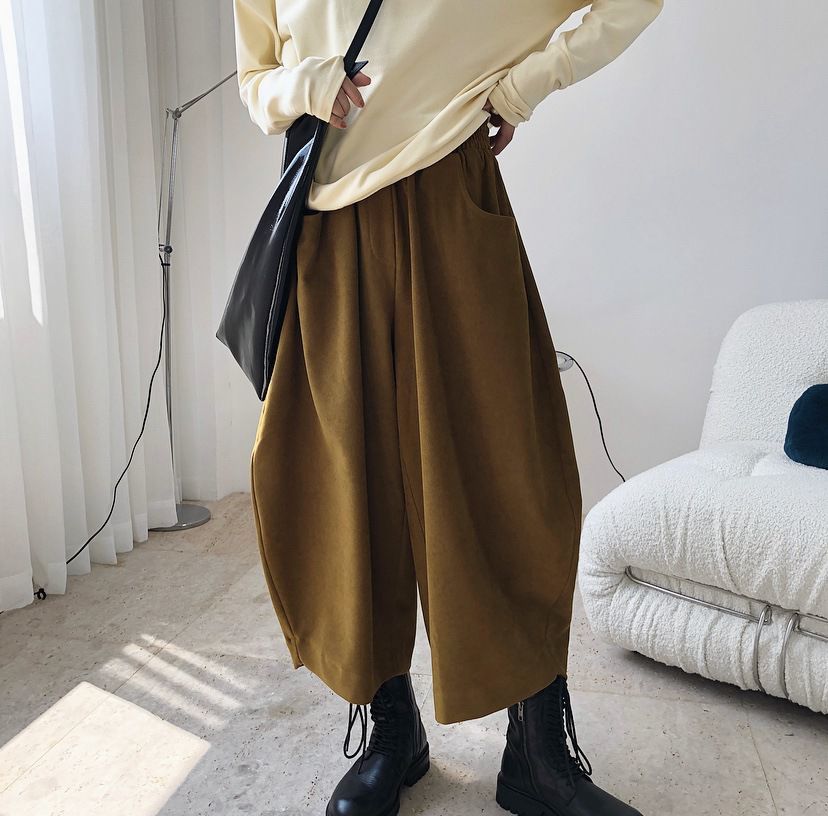 寬鬆的闊腿版型+鬆緊腰的9分長度