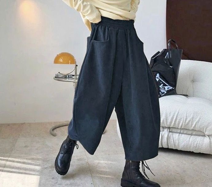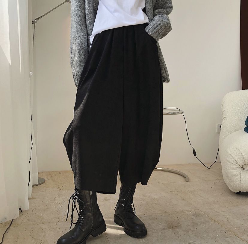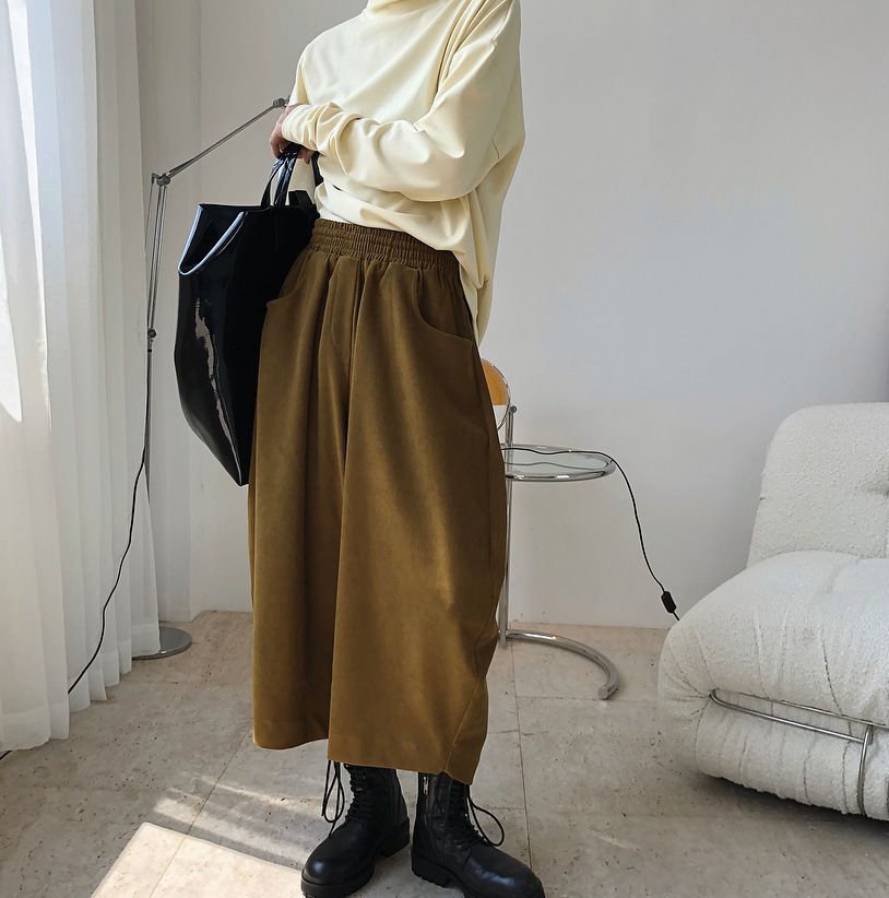 弧線的剪裁,褲型變的有趣,看著像裙子又像褲裝