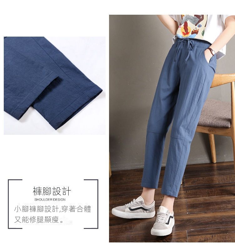 日系顯瘦寬鬆闊腿九分休閒哈倫褲