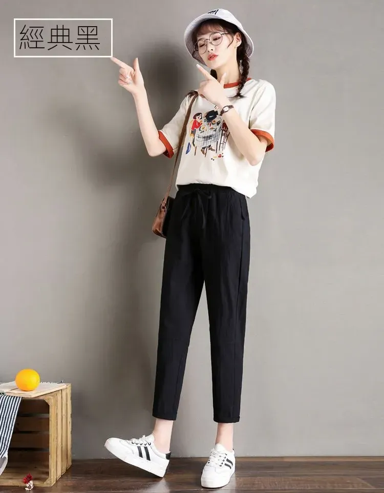 韓版高腰寬鬆顯瘦休閒直筒九分小腳哈倫褲裝
