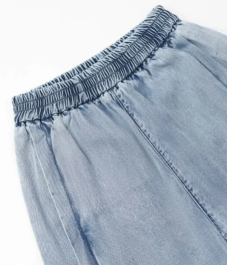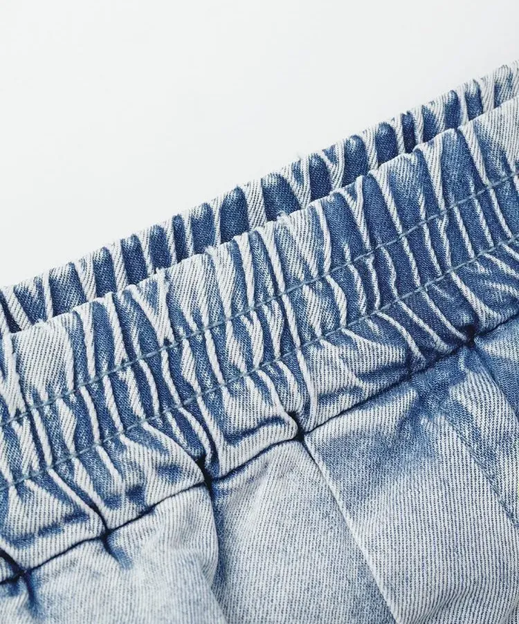 寬鬆大碼鬆緊高腰薄款哈倫七分牛仔褲