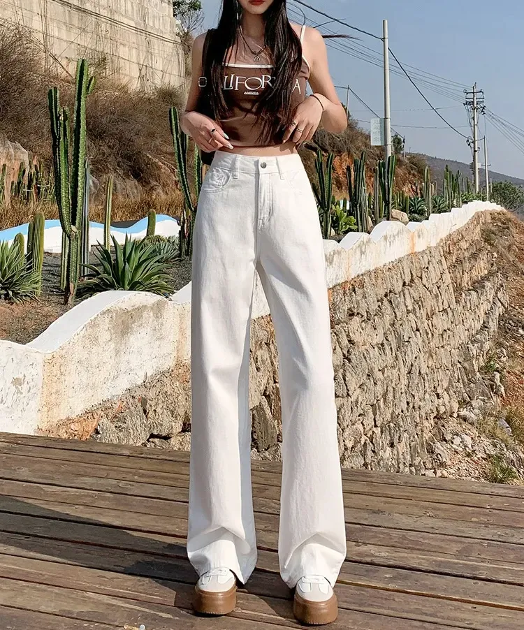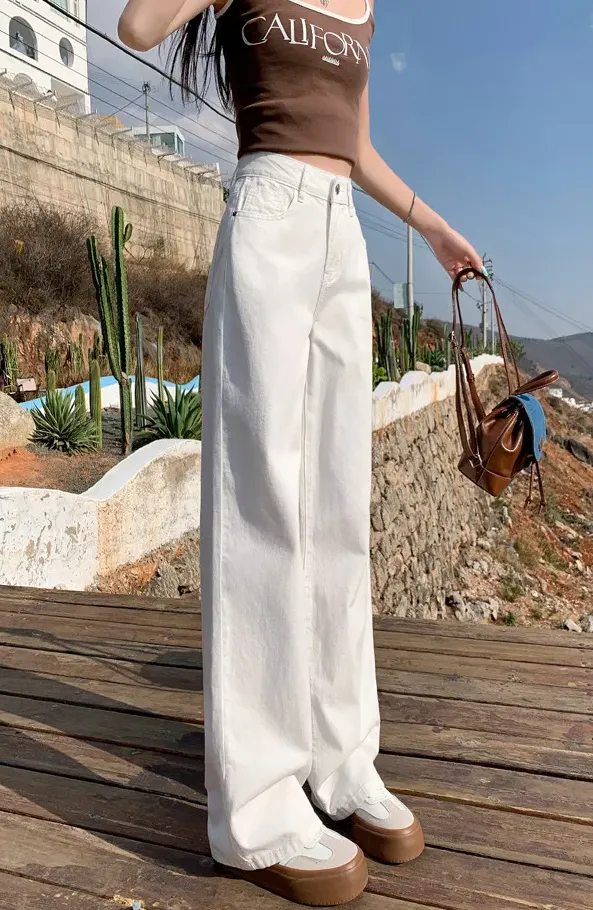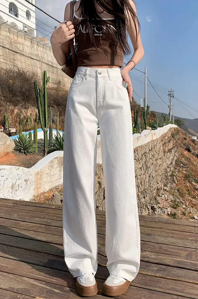 8色高腰顯瘦直筒闊腿垂感寬鬆牛仔褲