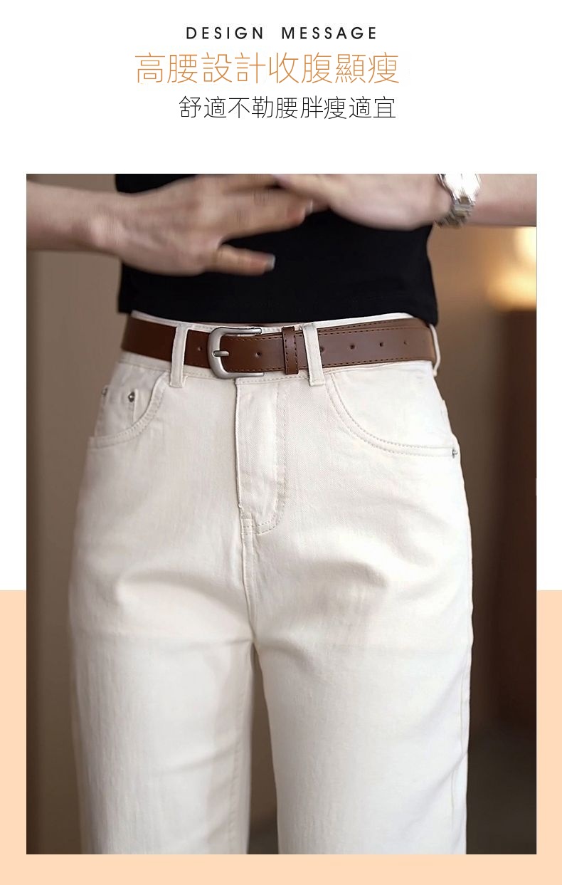 顯瘦高腰寬鬆彈力直筒牛仔褲