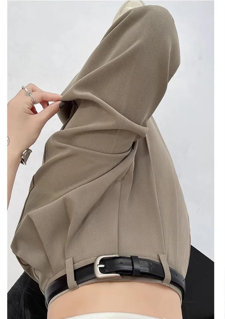 高級感氣質高腰垂感直筒闊腿西裝褲