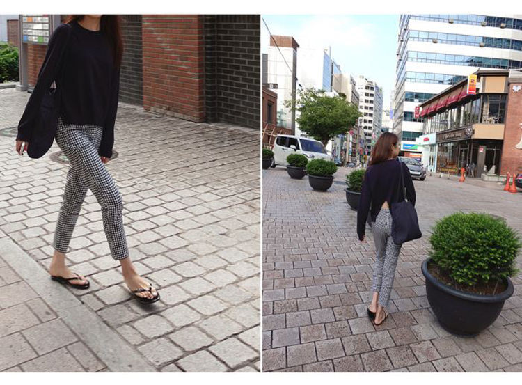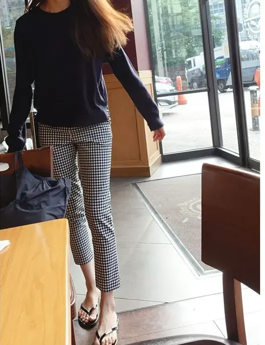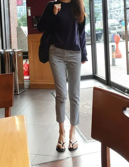 黑白格子 九分褲