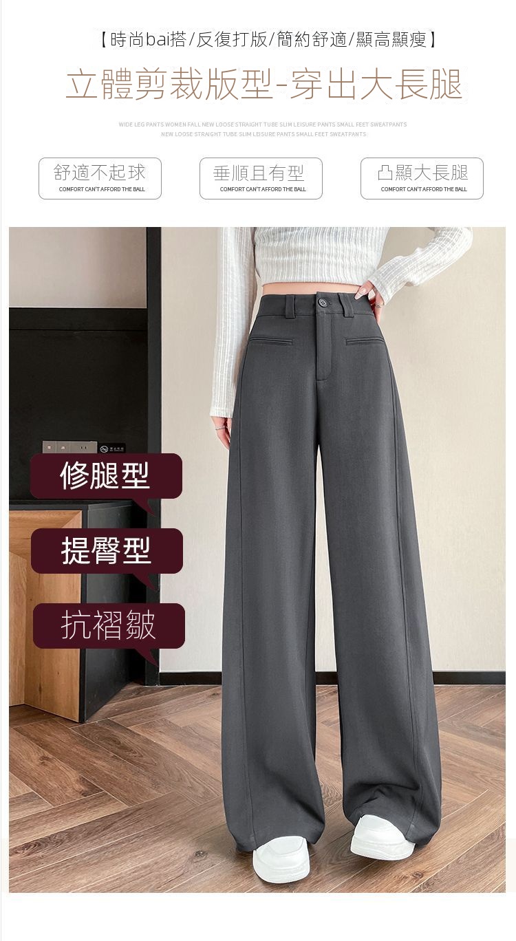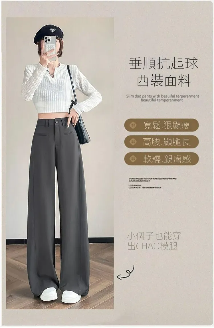 高腰顯瘦垂感高級感休閒西裝闊腿拖地褲