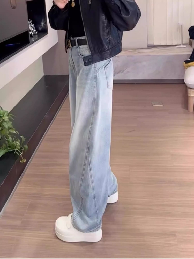 【產品類別】牛仔褲【面料名稱】牛仔布【款式】直筒褲【褲長】長褲【腰型】高腰【厚薄】中等【流行元素】做舊【彈力】無彈【褲型】闊腿【風格類型】舒適休閒