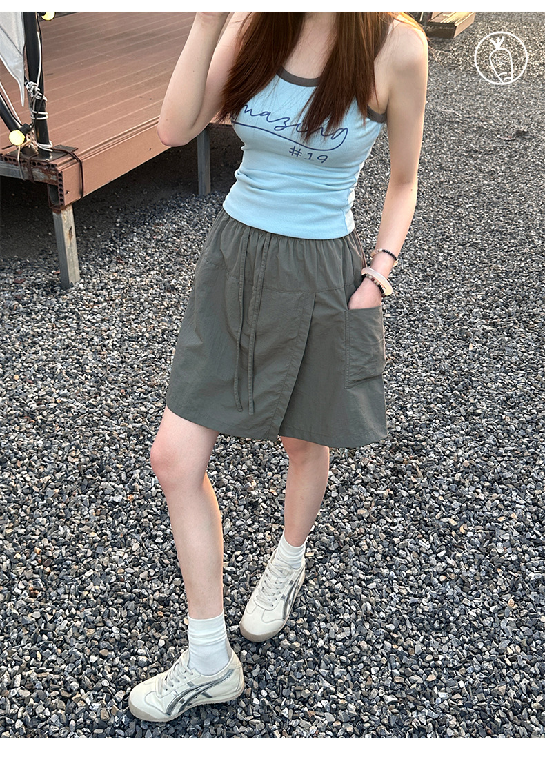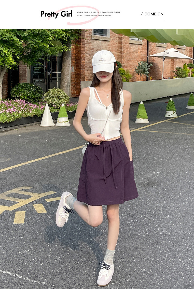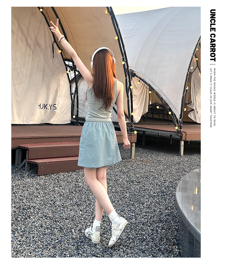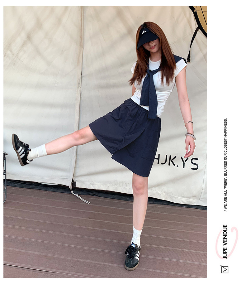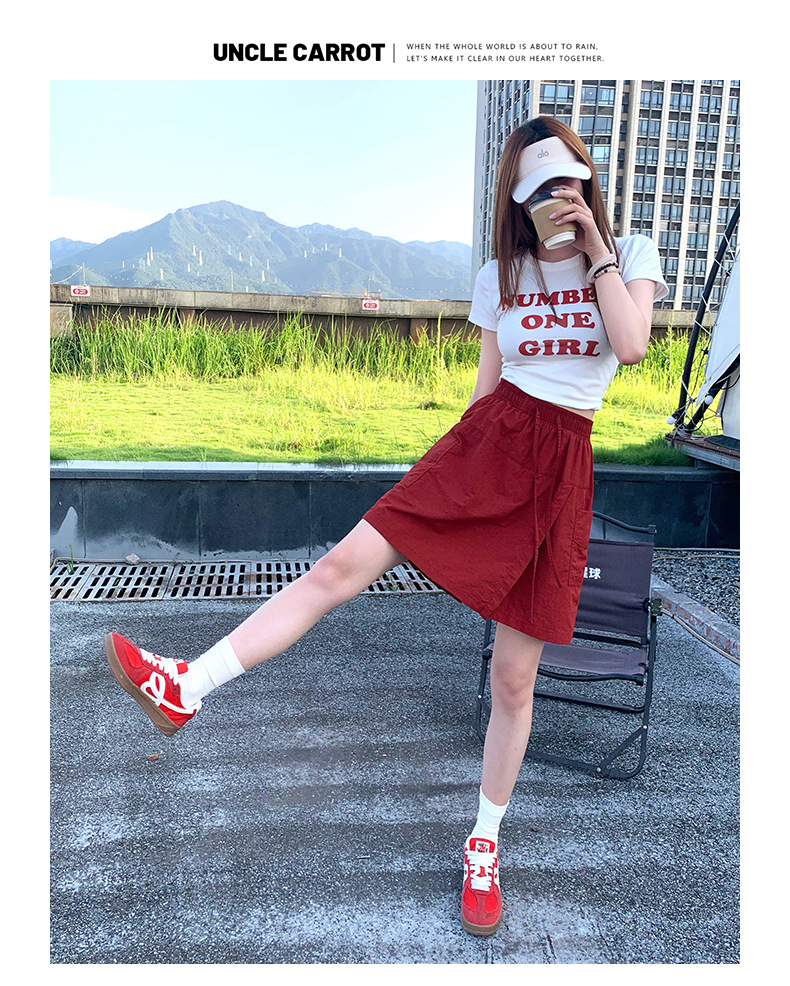 【套裝】時尚休閒寬鬆T恤+運動高腰A字裙兩件套裝
