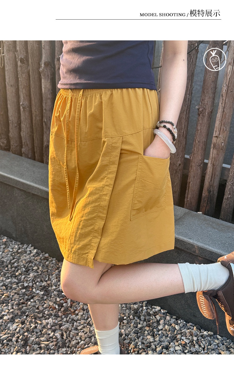 日韓休閒華夫格開叉圓領落肩短袖T恤