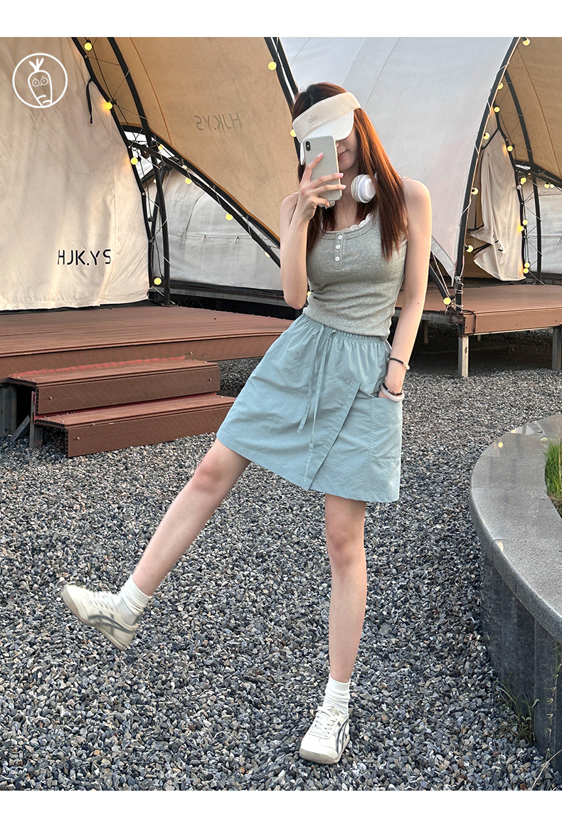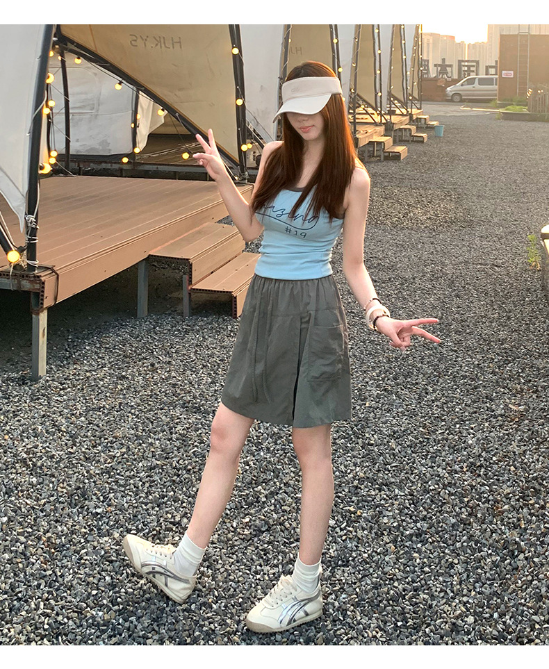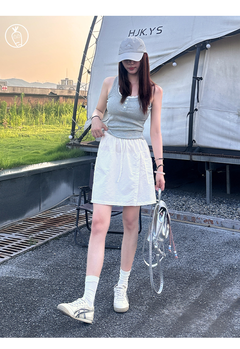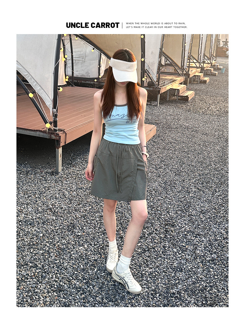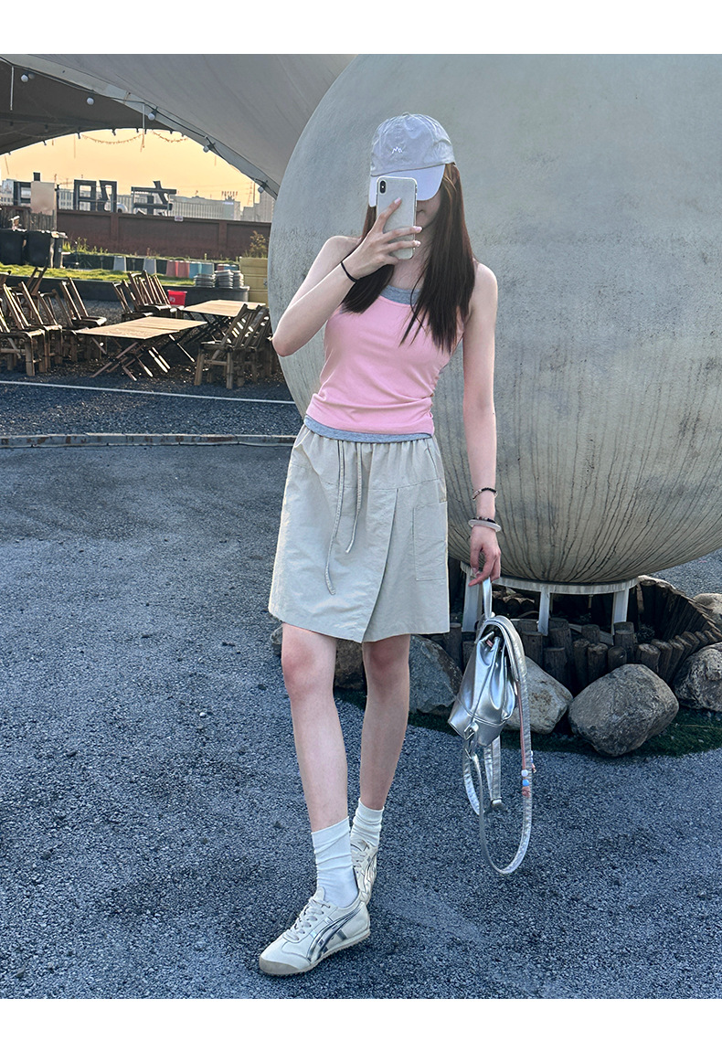 針織冰絲涼爽透氣V領寬鬆吊帶背心