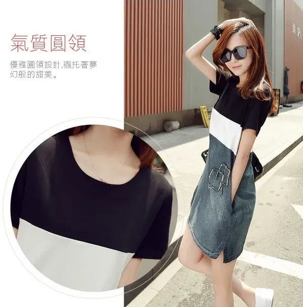 拼接修身A字裙牛仔顯瘦洋裝