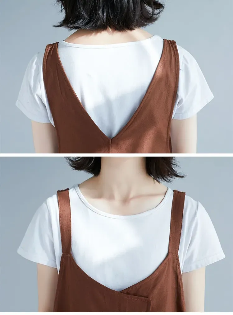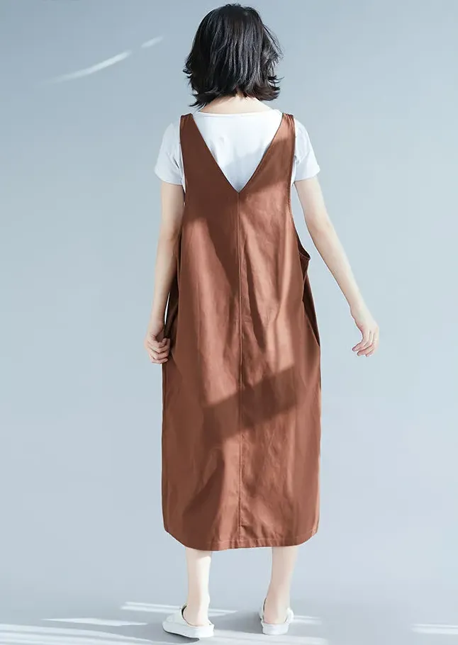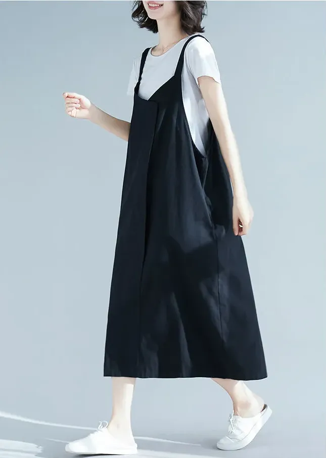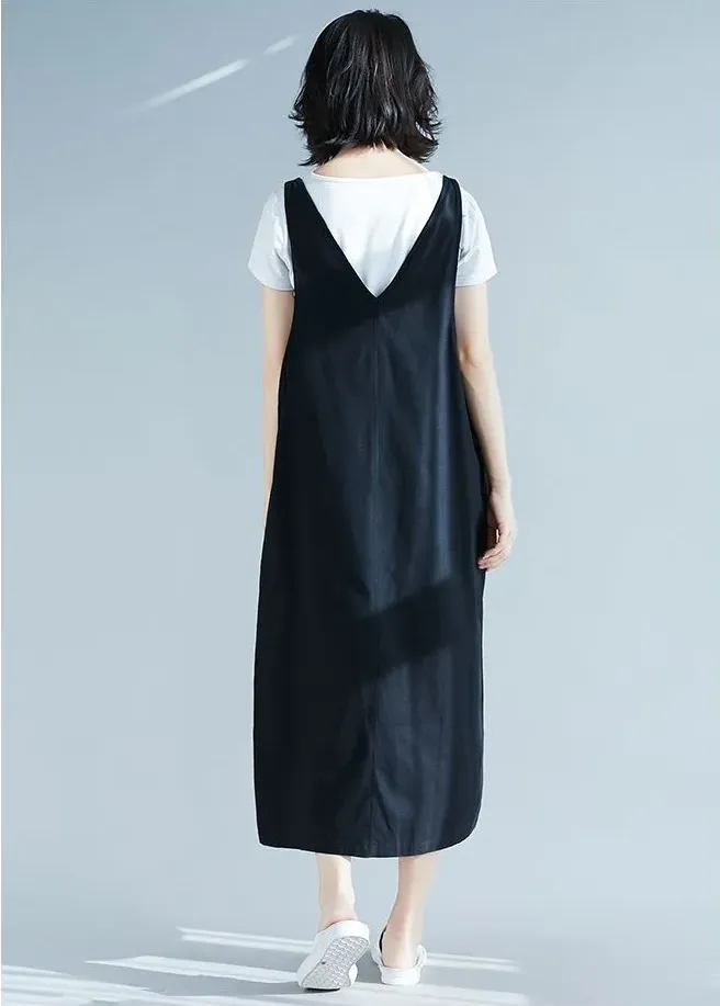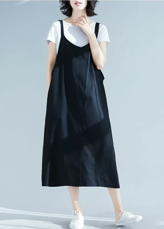 韓版休閒寬鬆棉麻中長款無袖吊帶洋裝