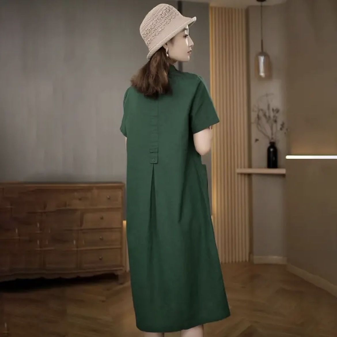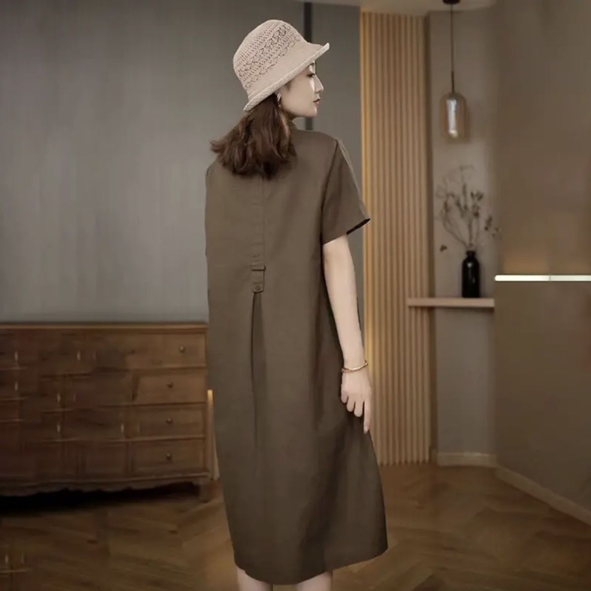休閒氣質寬鬆素色口袋襯衫洋裝