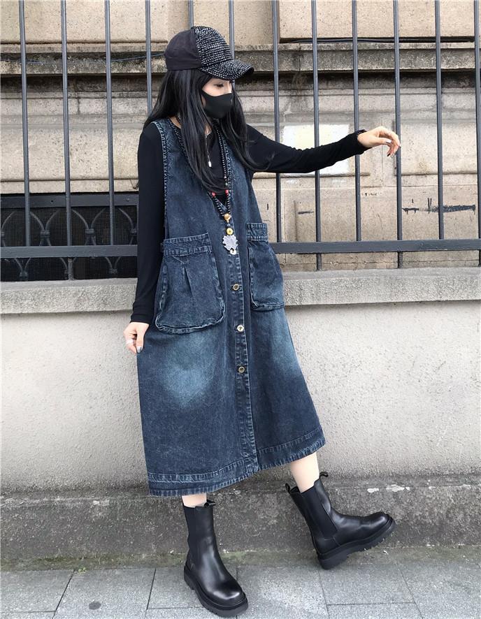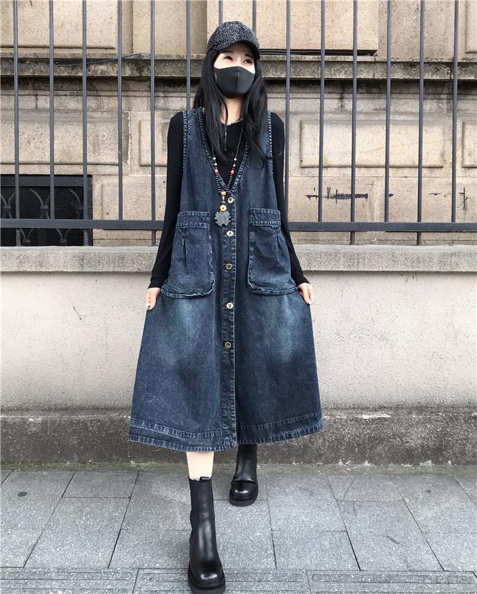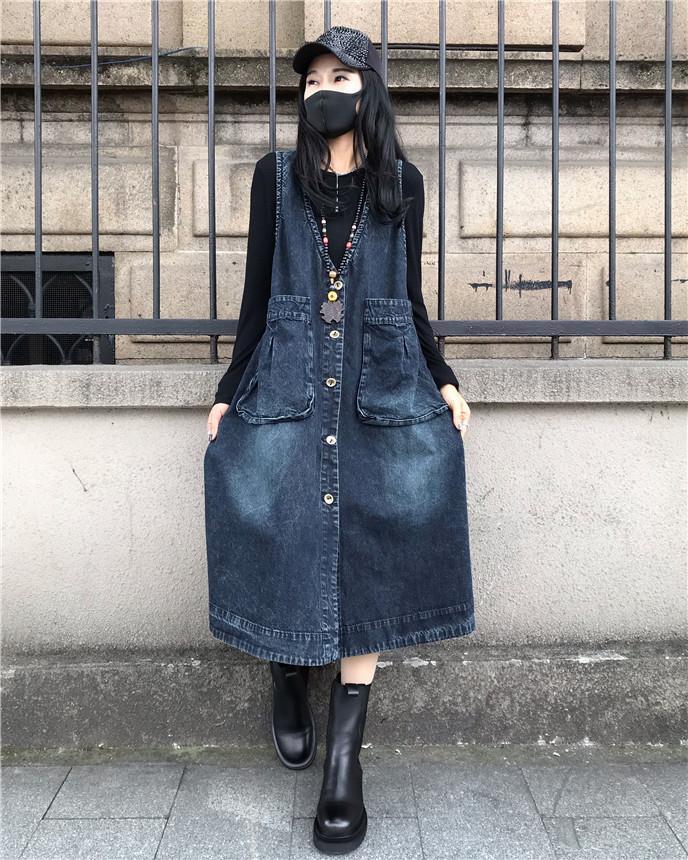 韓版寬鬆時尚中長款休閒牛仔背心洋裝