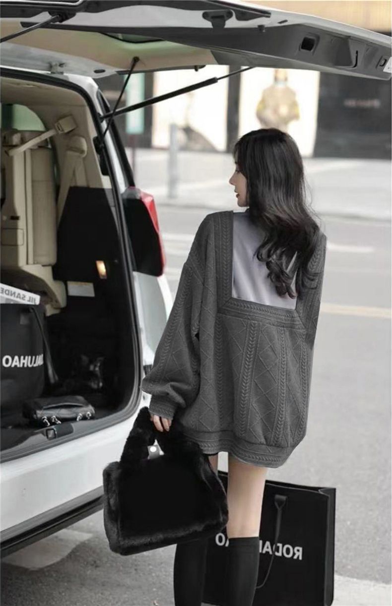 韓系撞色氛圍感假兩件針織開衫
