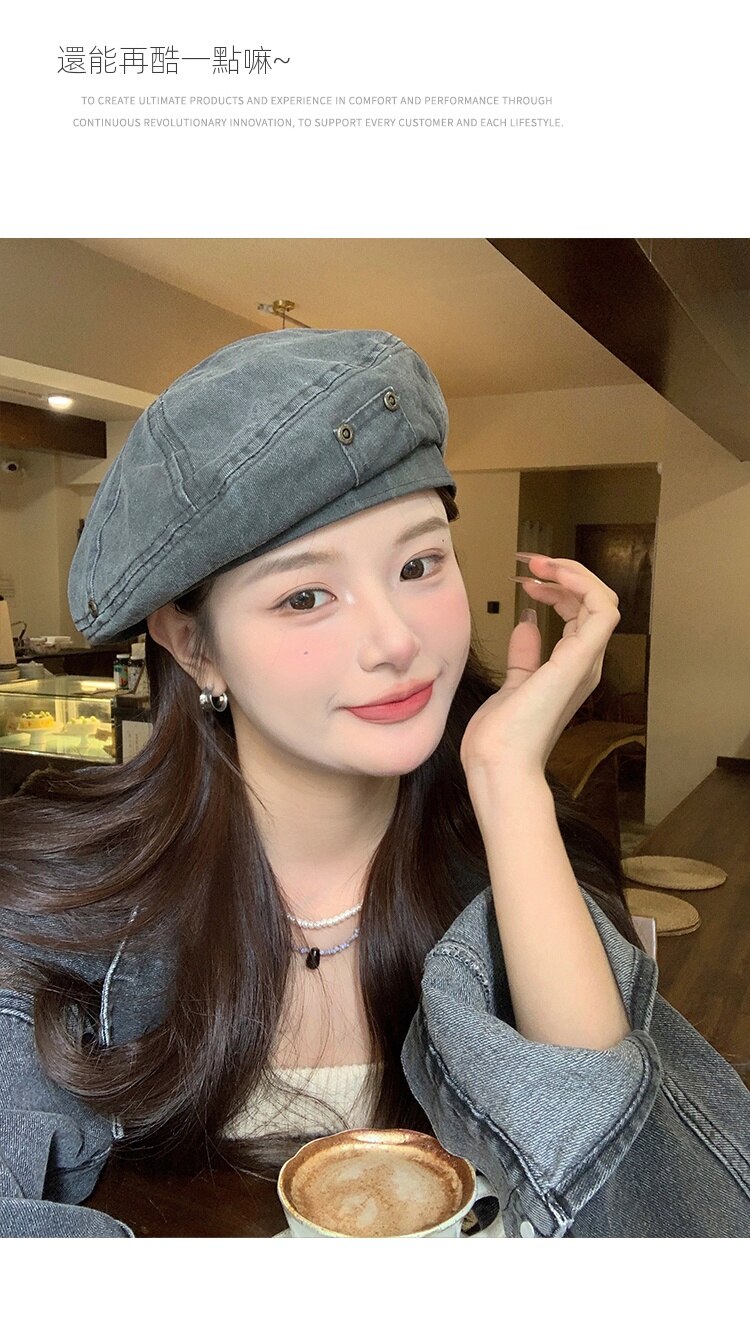 【5色】日系做舊復古時尚百搭藝術顯臉小水洗貝雷帽