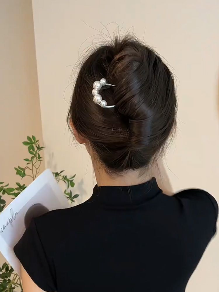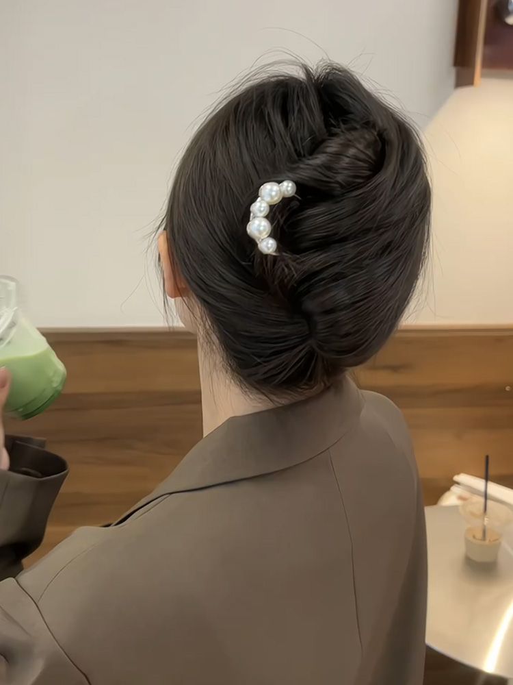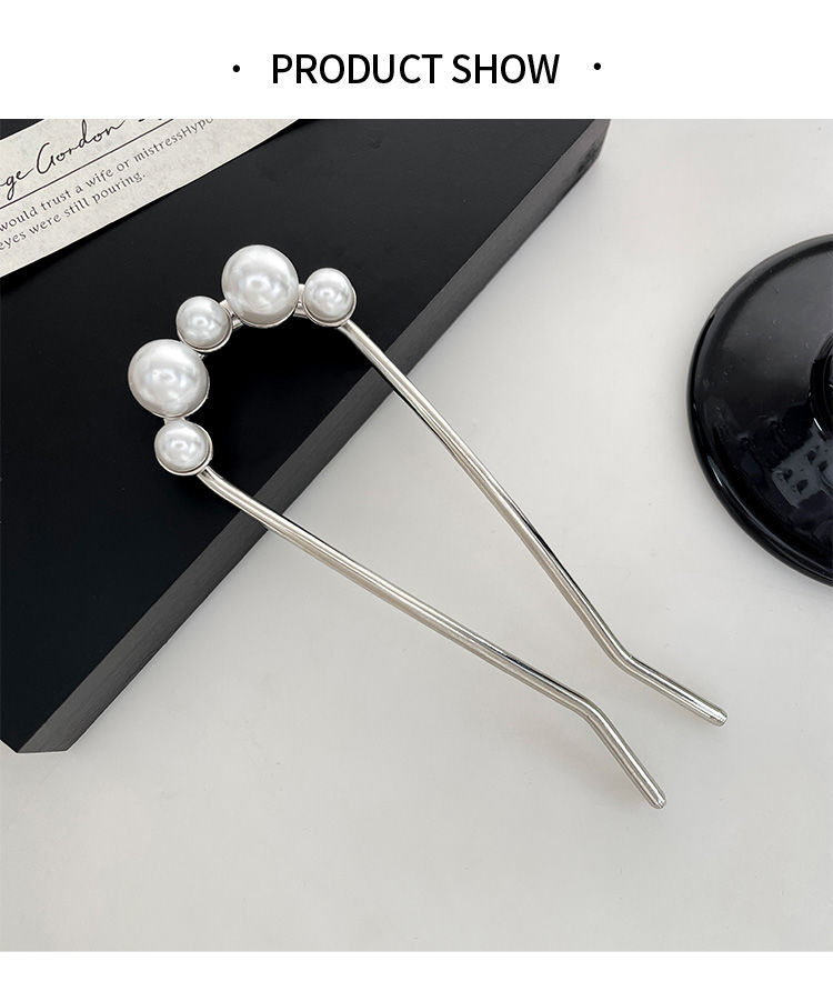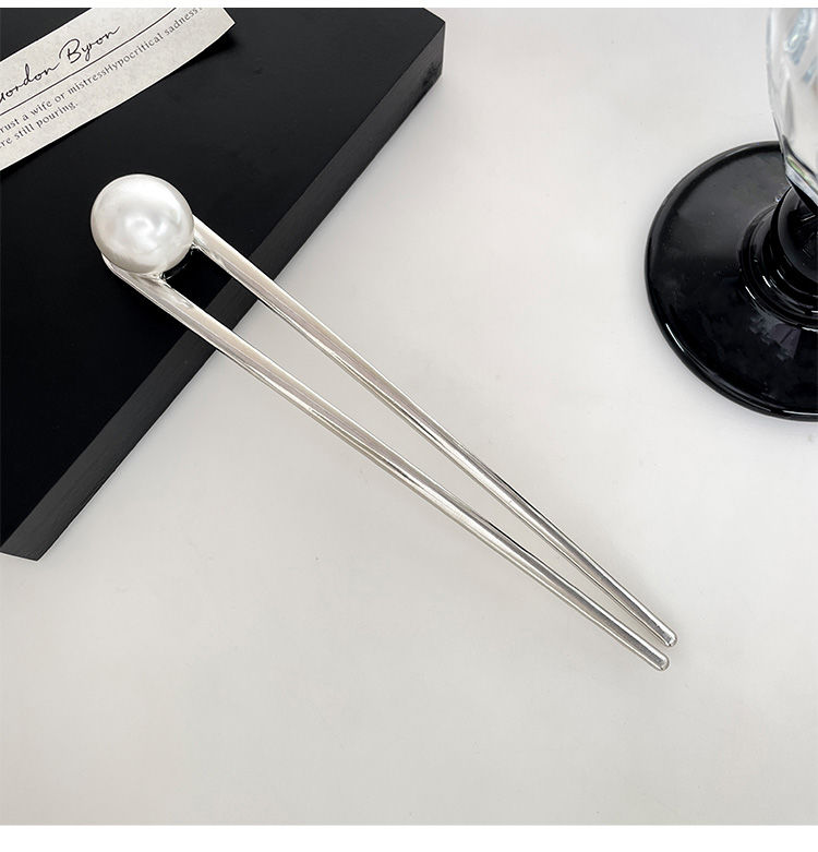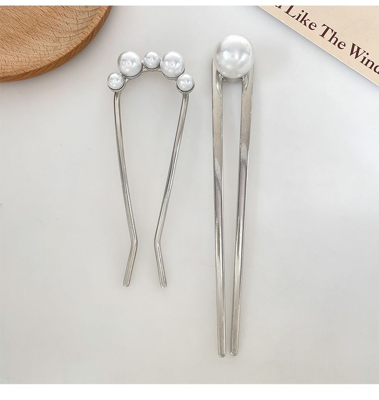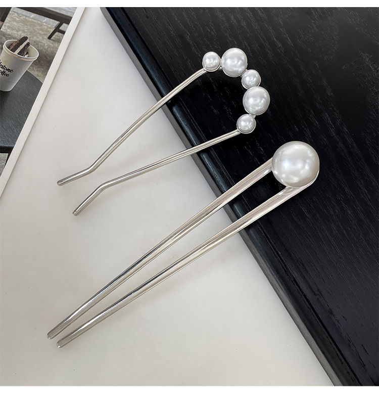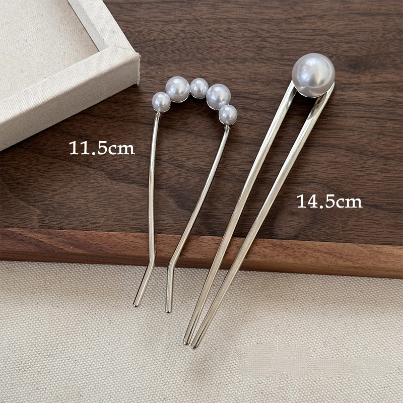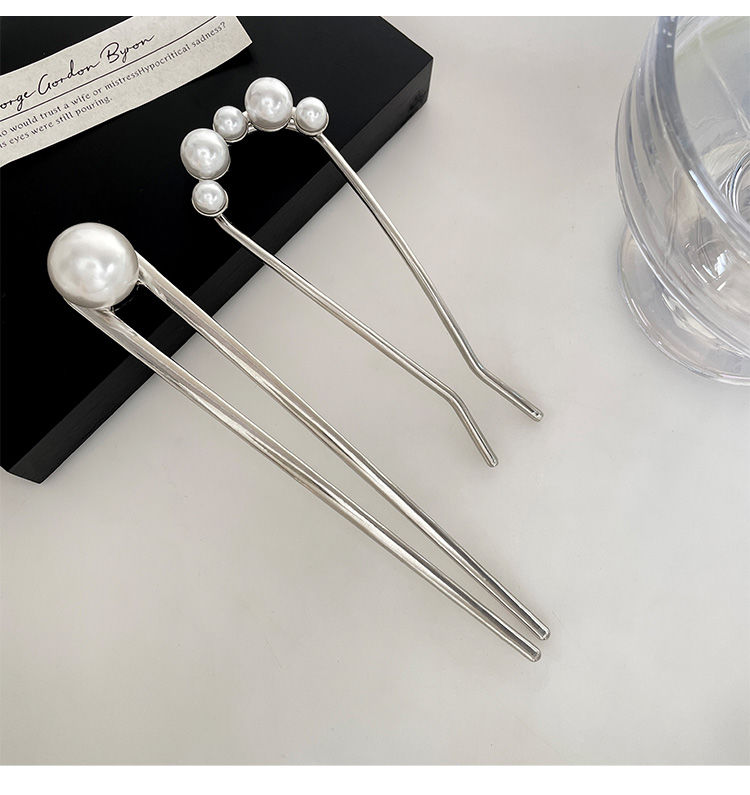 新中式U型高級感珍珠盤髮丸子頭髮簪