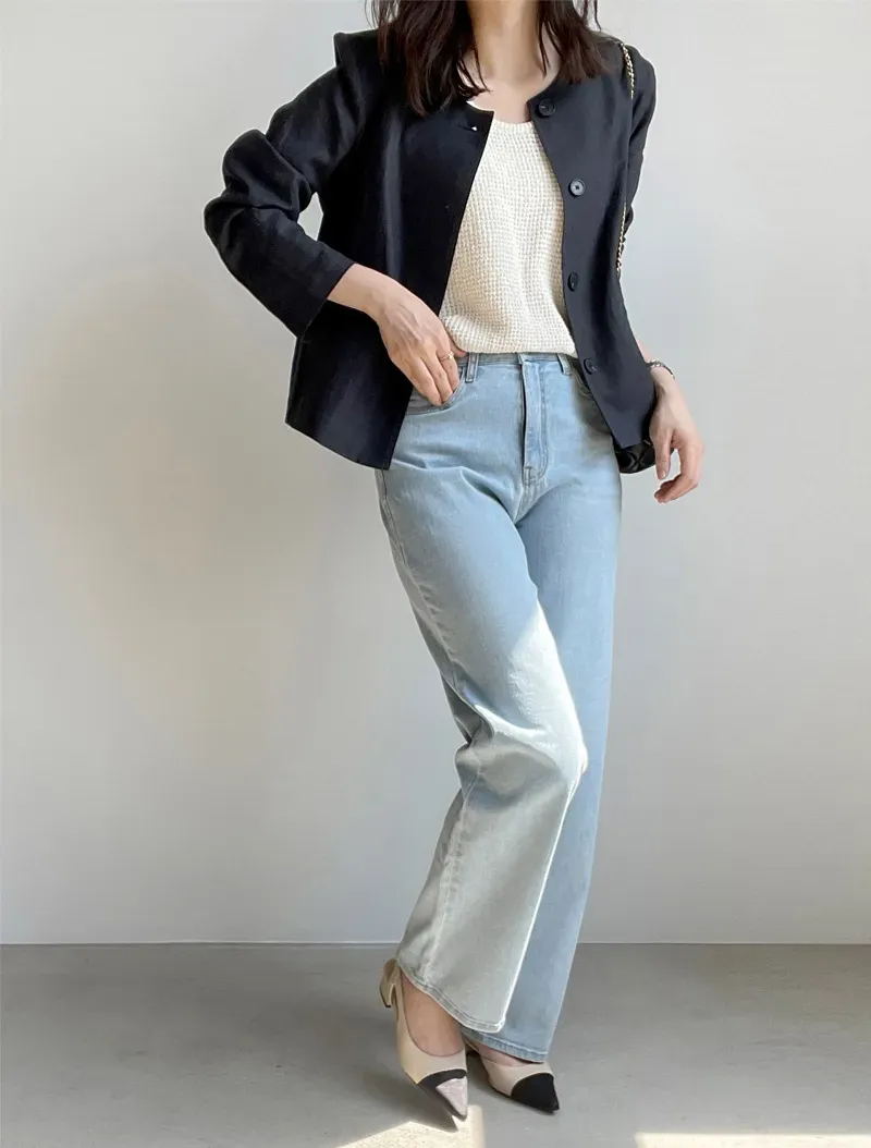 高腰垂感顯瘦寬鬆闊腿百搭直筒牛仔褲