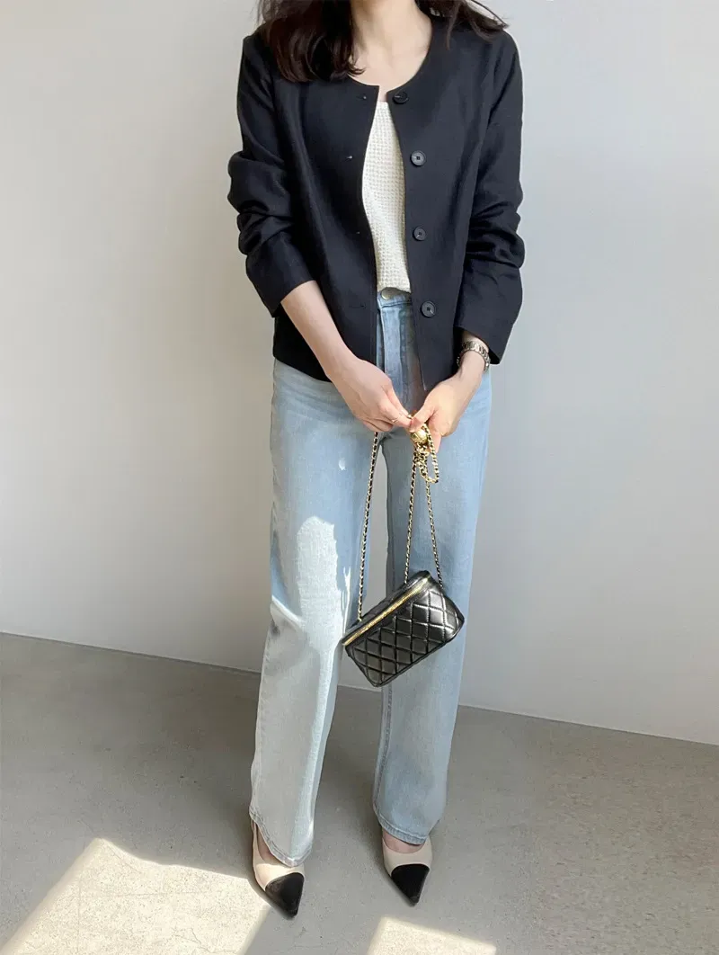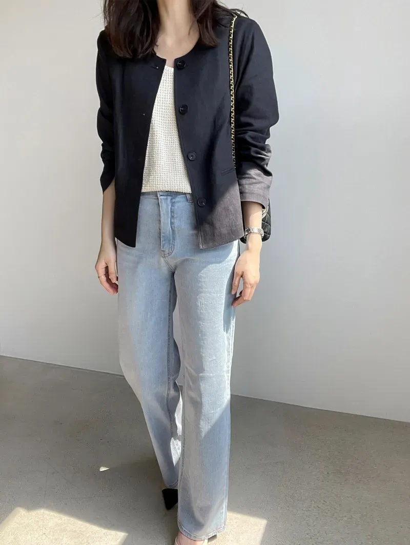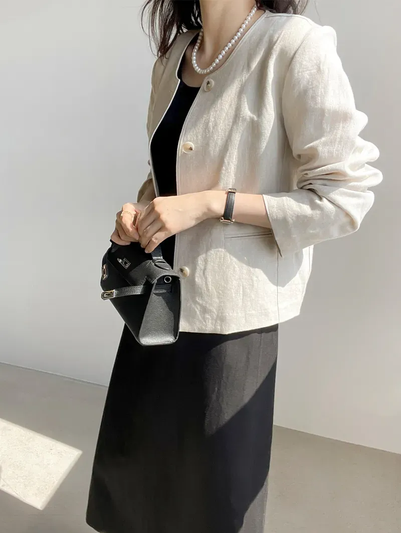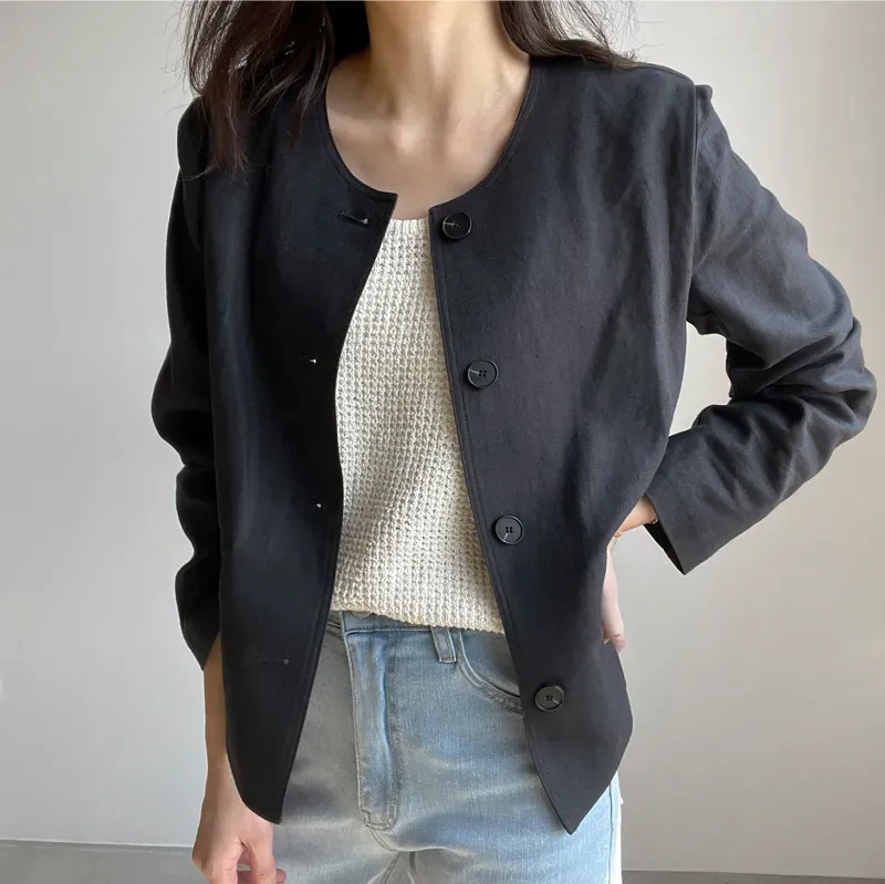 韓版氣質百搭亞麻圓領小西裝防曬開衫
