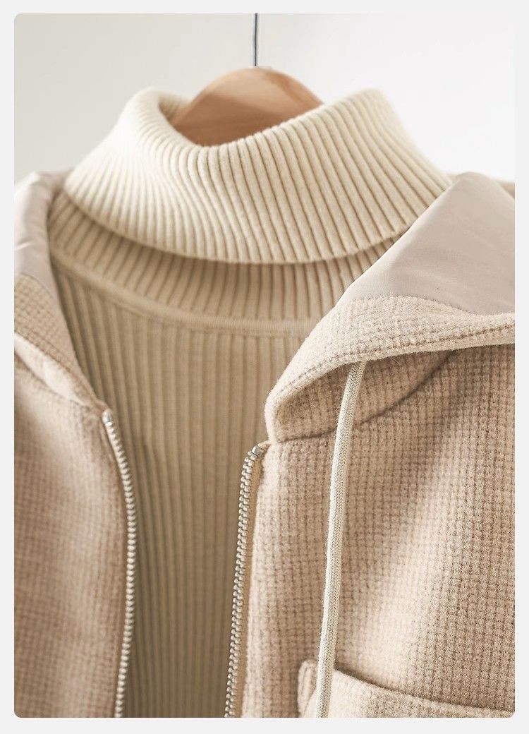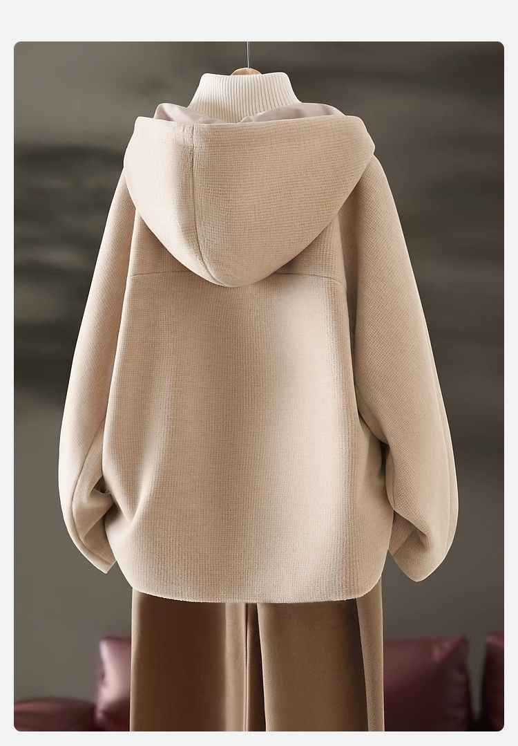 寬鬆連帽羊毛撞色紐扣針織開衫