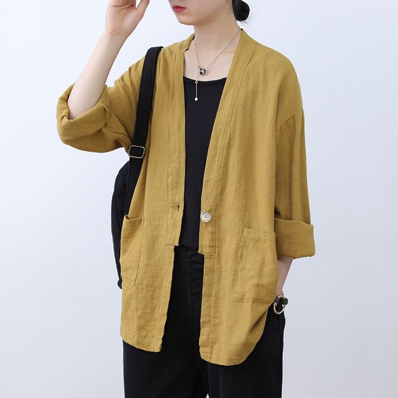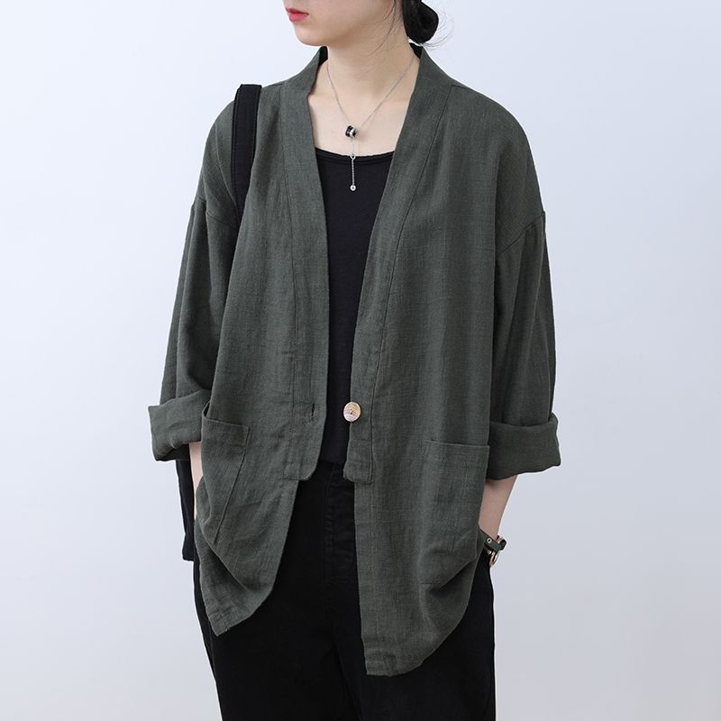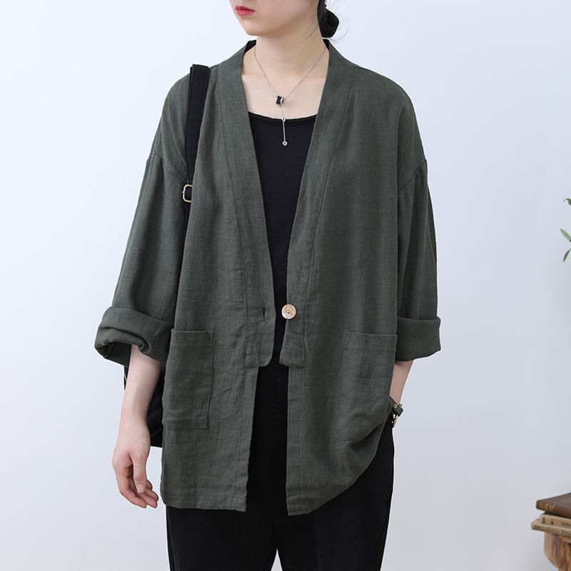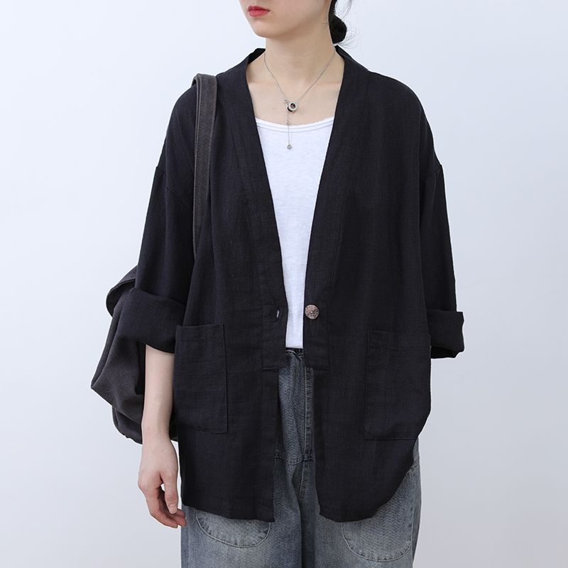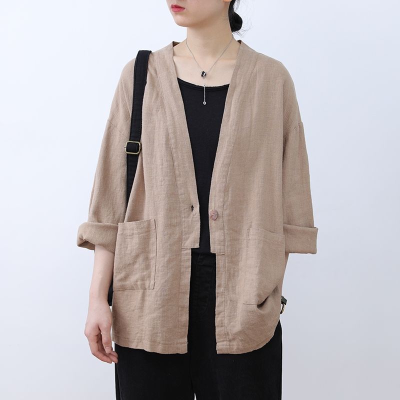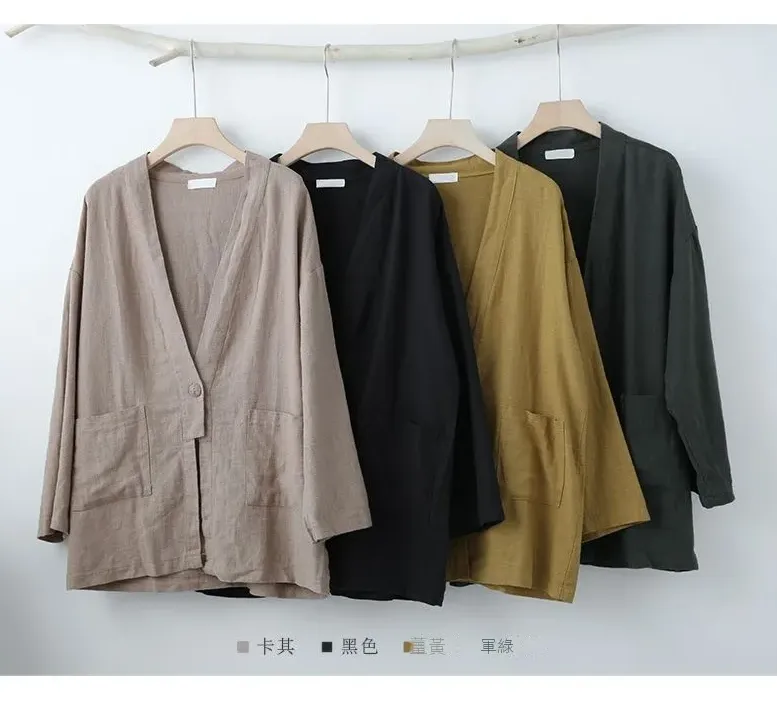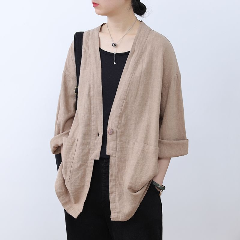 日系休閒棉麻寬鬆顯瘦一粒扣長袖開衫