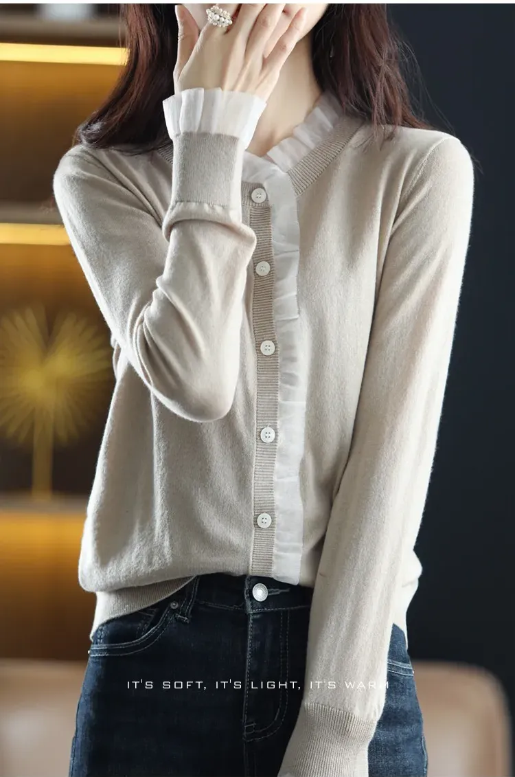 韓系撞色氛圍感假兩件針織開衫