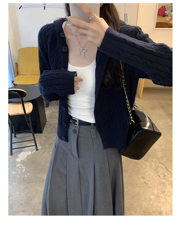 設計感顯瘦氣質百搭連帽長袖針織開衫