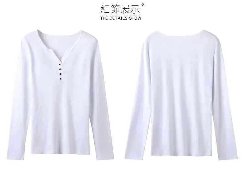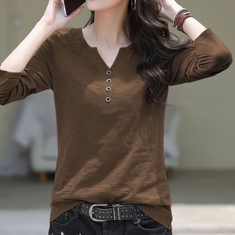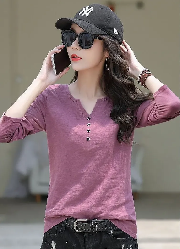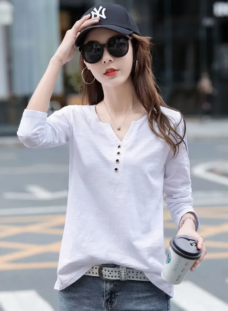 6色寬鬆百搭V領竹節棉長袖