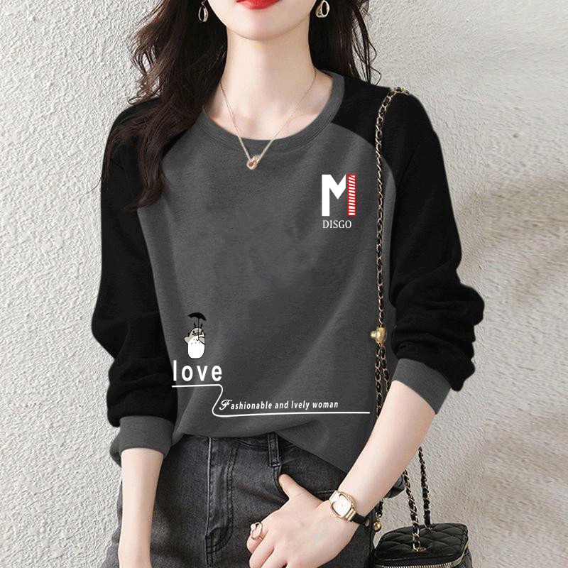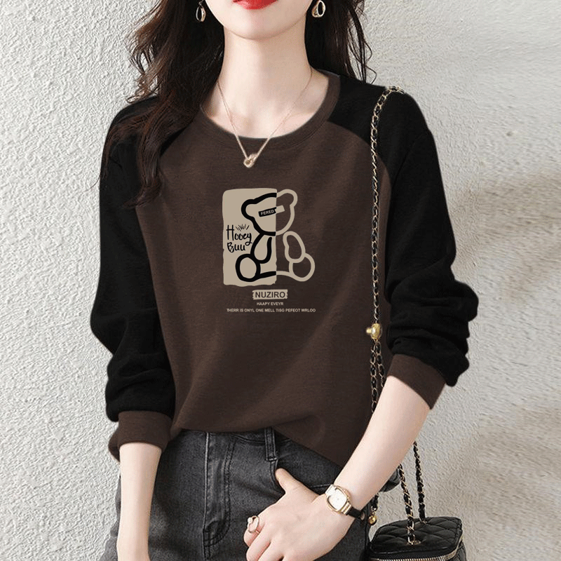 慵懶風寬鬆藏肉舒適時髦撞色袖口長袖T恤