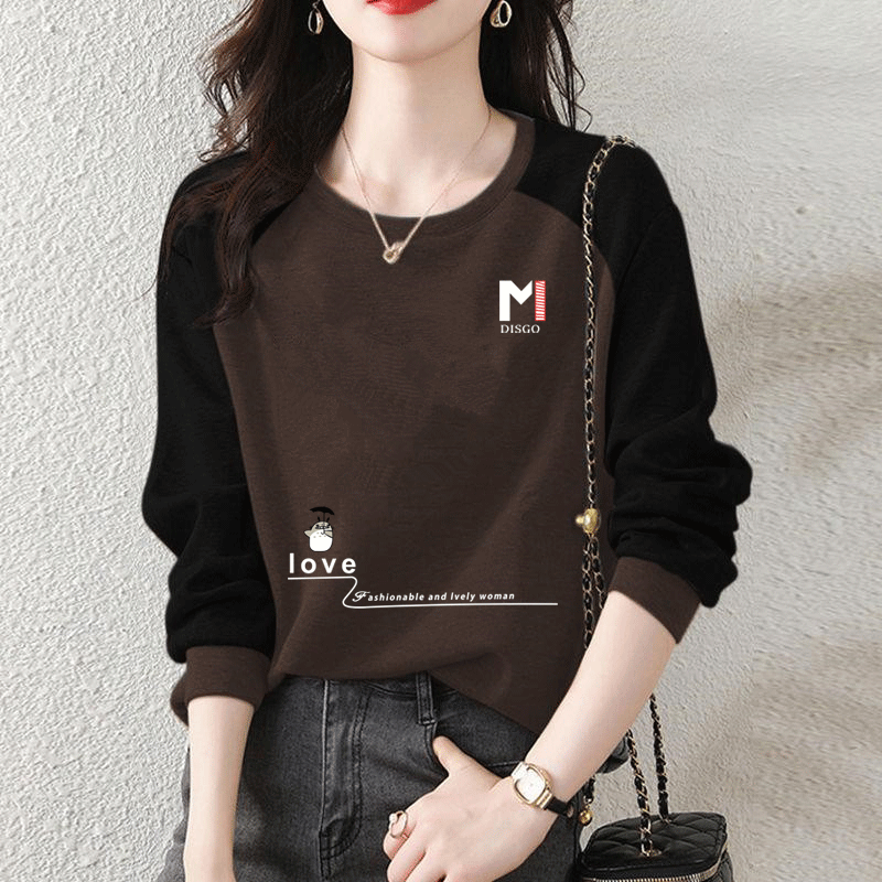 韓版寬鬆顯瘦套頭拼接長袖長袖