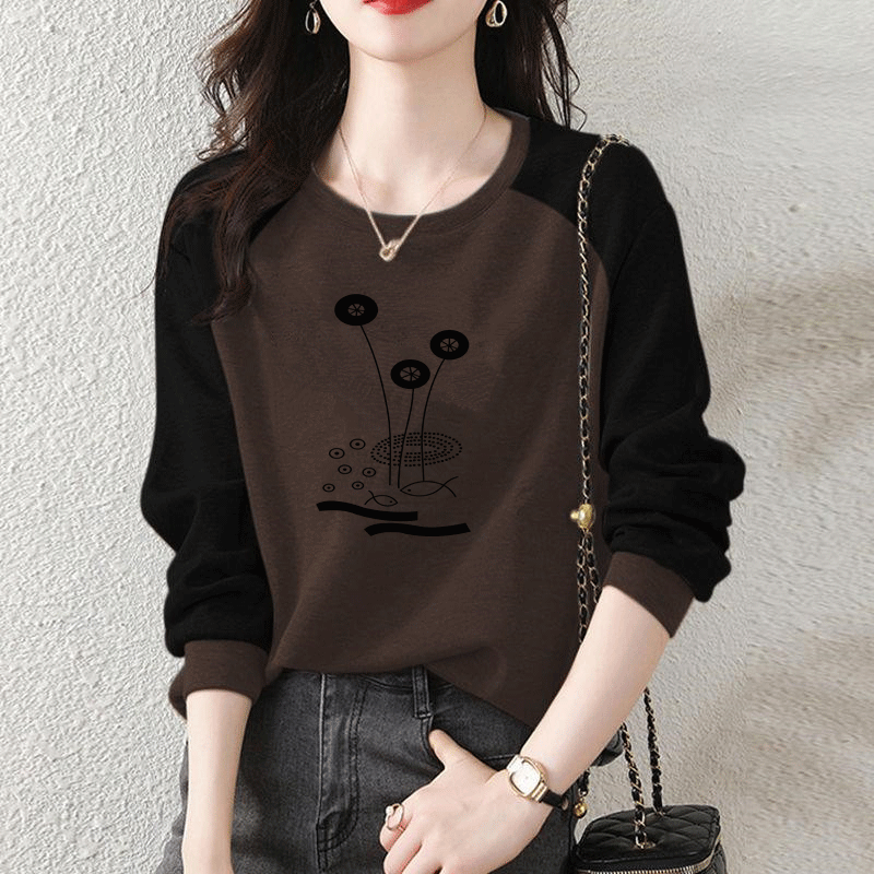 【單件/套裝】時髦印花圓領長袖+闊腿褲兩件套裝