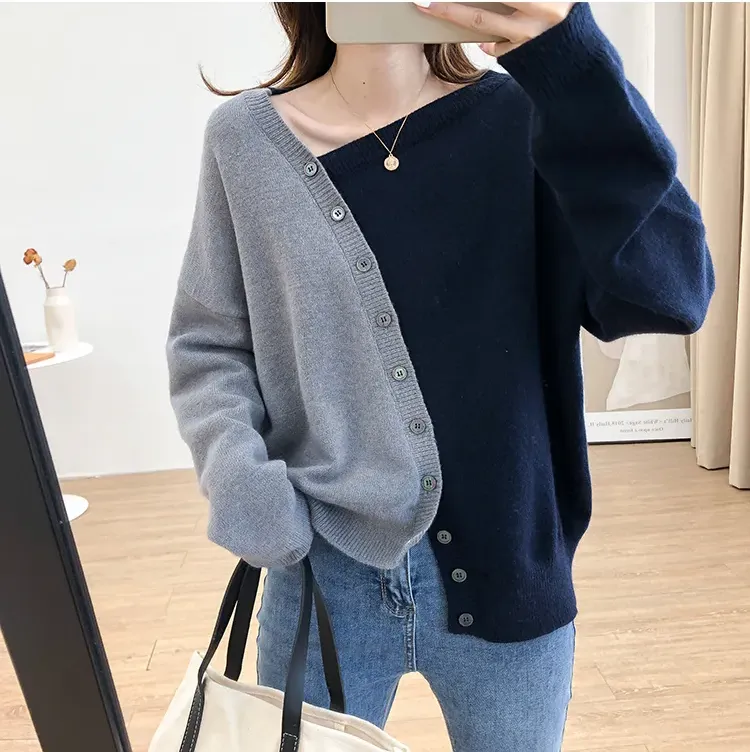 【單件/套裝】撞色假兩件長袖T恤+休閒闊腿褲兩件套