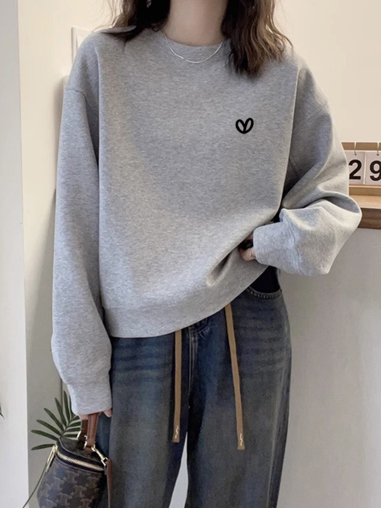 寬鬆休閒圓領刷毛加厚長袖T恤