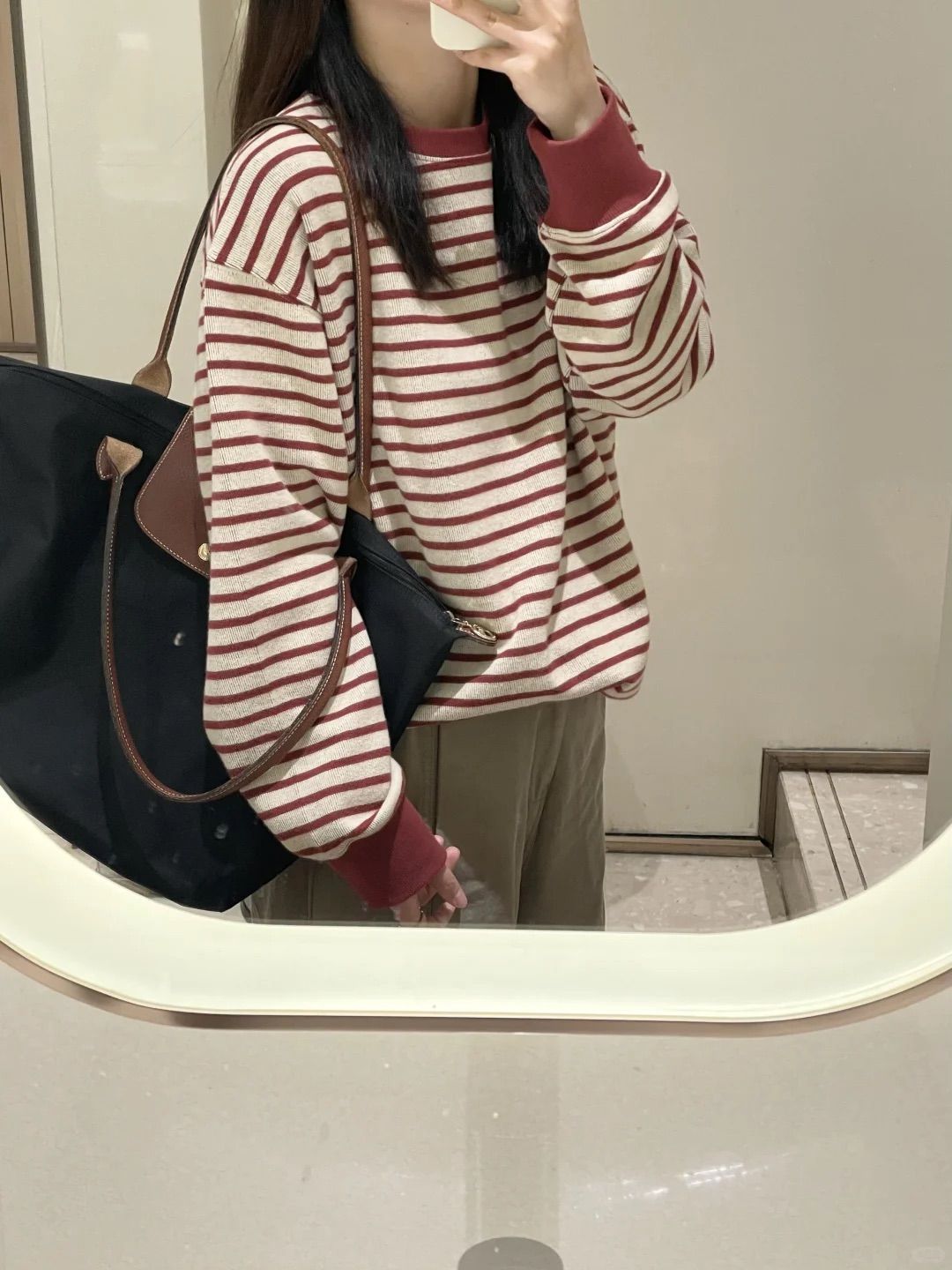 慵懶風寬鬆藏肉舒適時髦撞色袖口長袖T恤