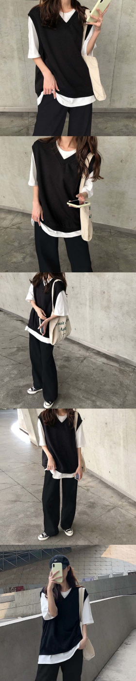【單件/整套】韓版顯瘦短袖馬甲闊腿褲三件套裝