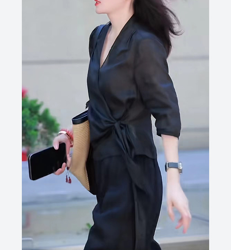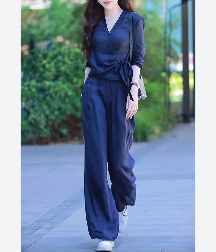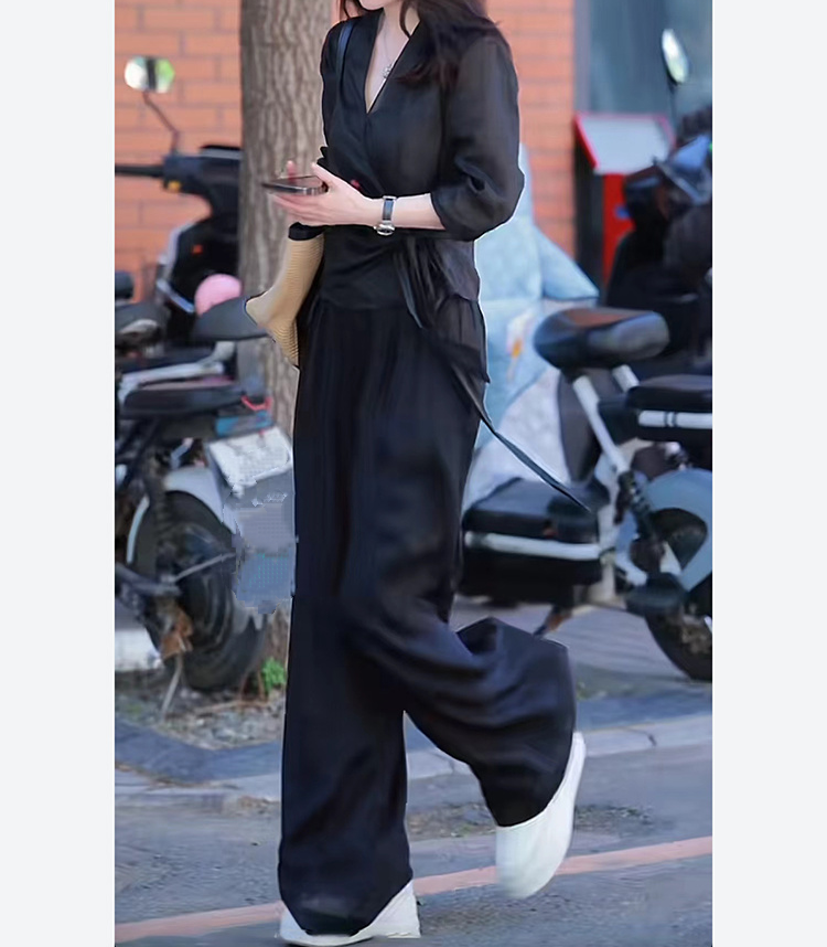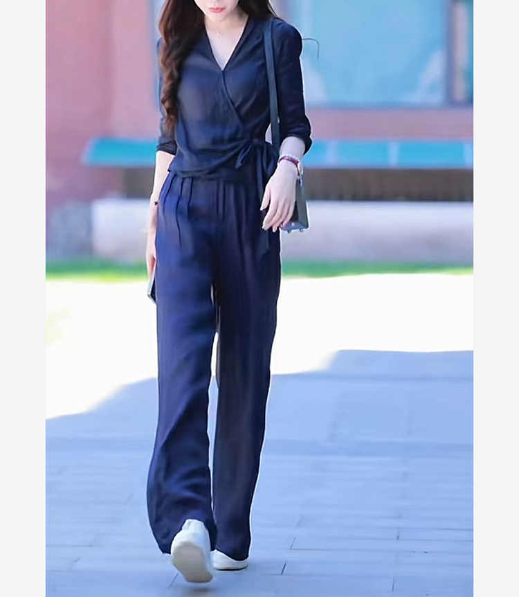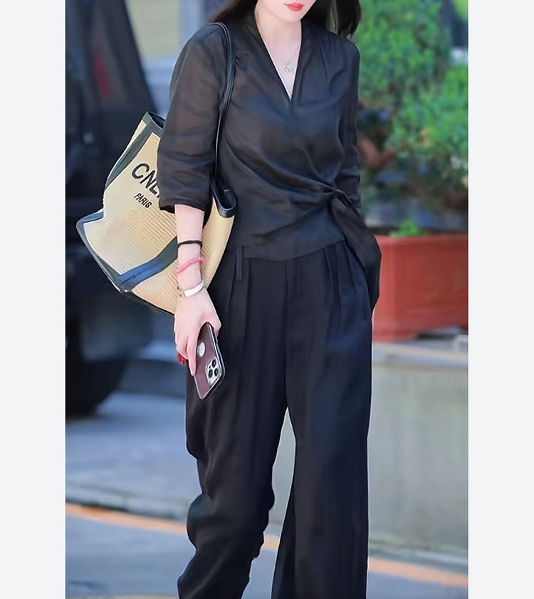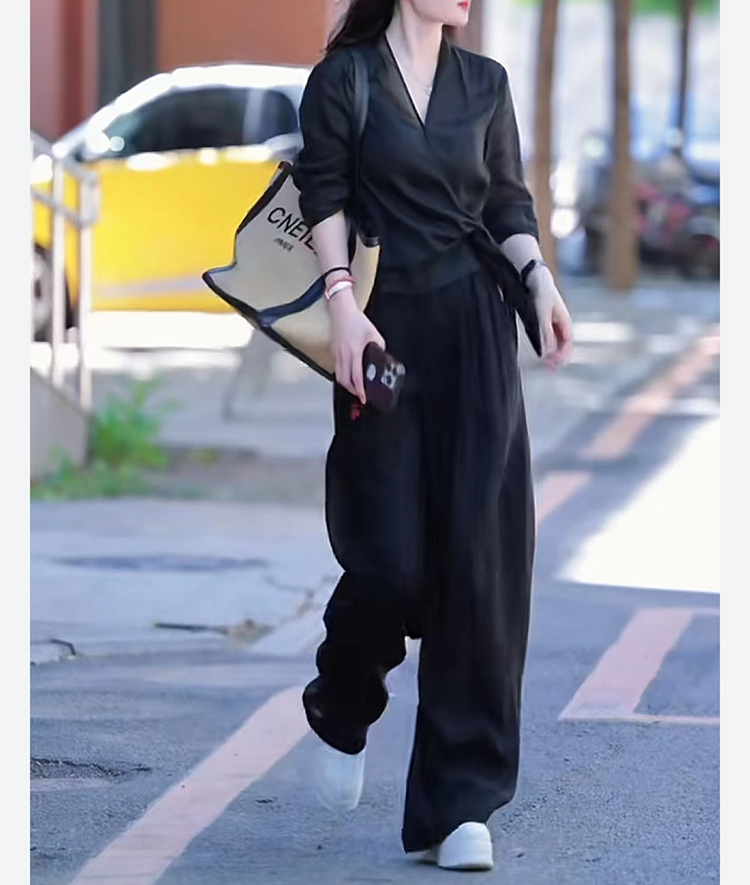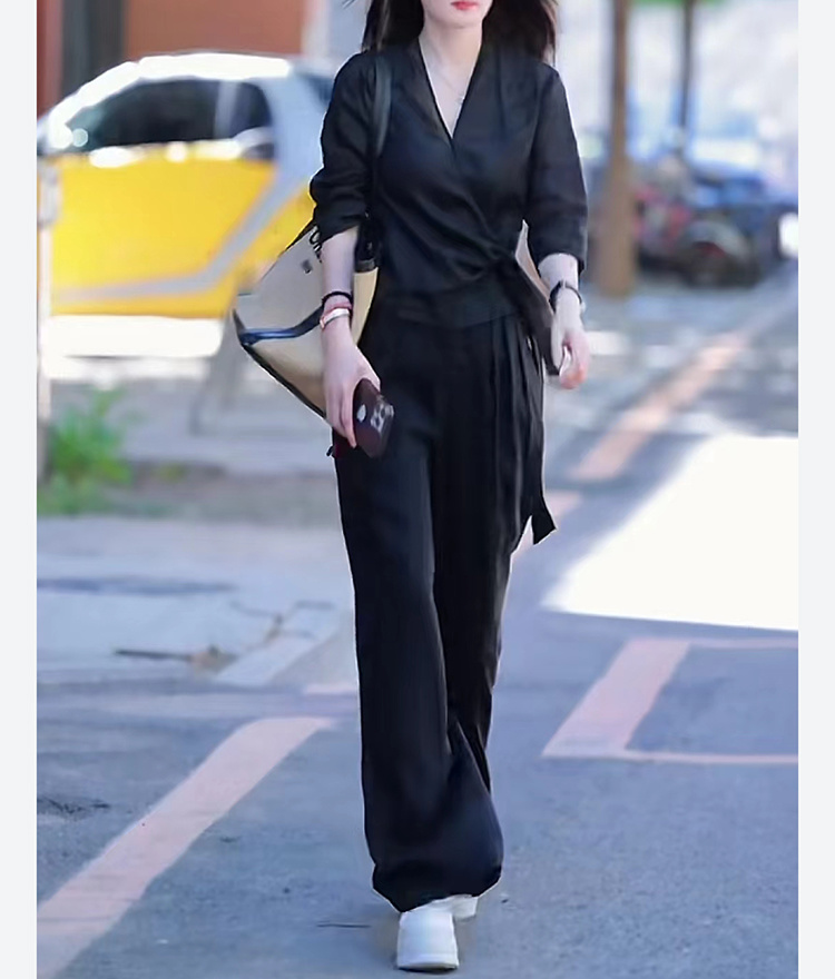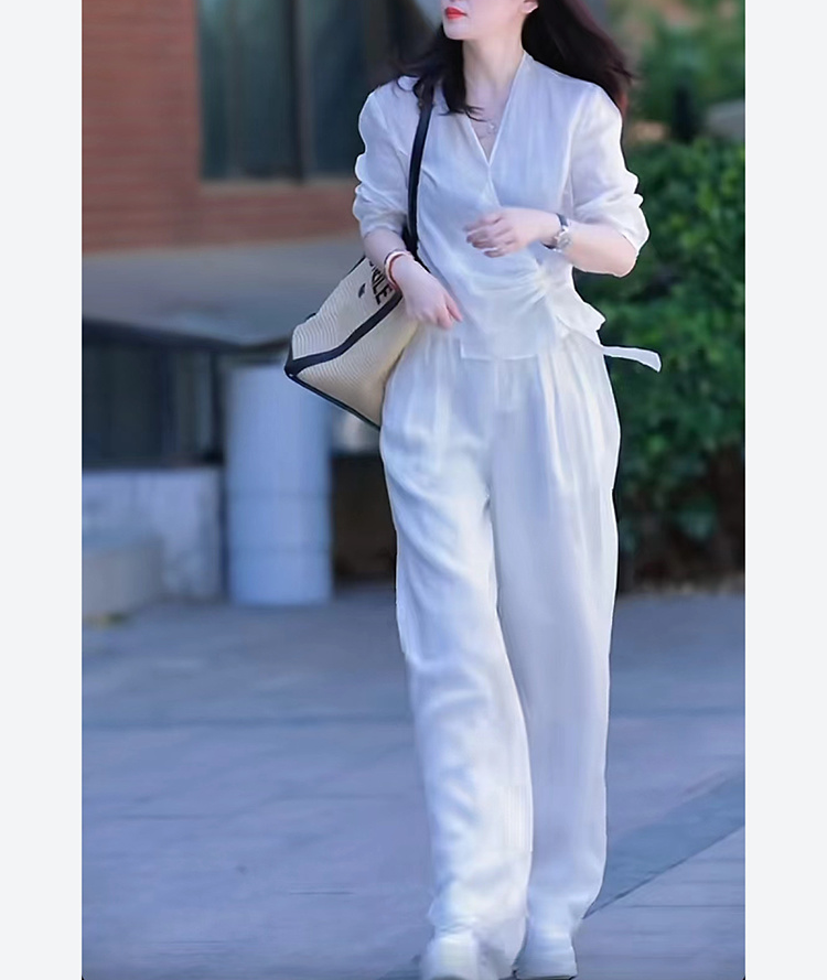 【單件/套裝】棉麻設計感V領襯衫高腰闊腿褲兩件套裝