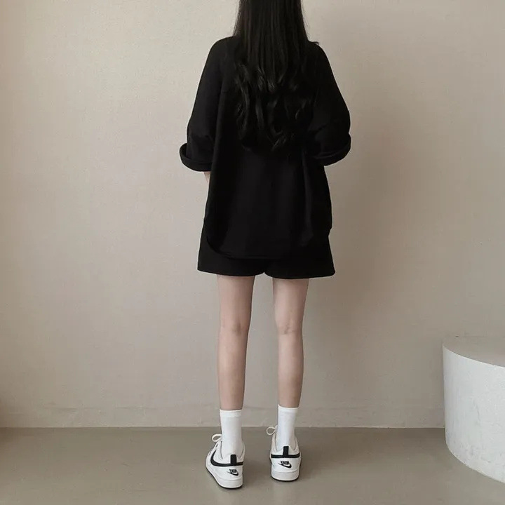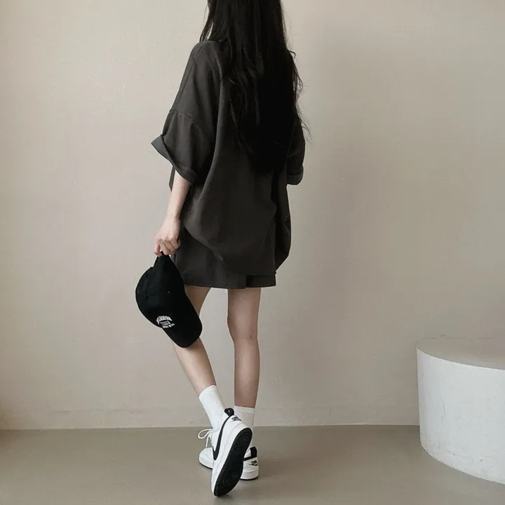 【整套】純棉韓版短袖T恤休閒短褲素色兩件套裝