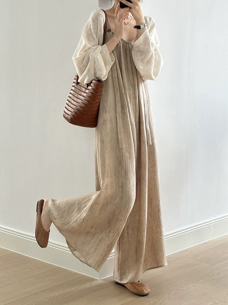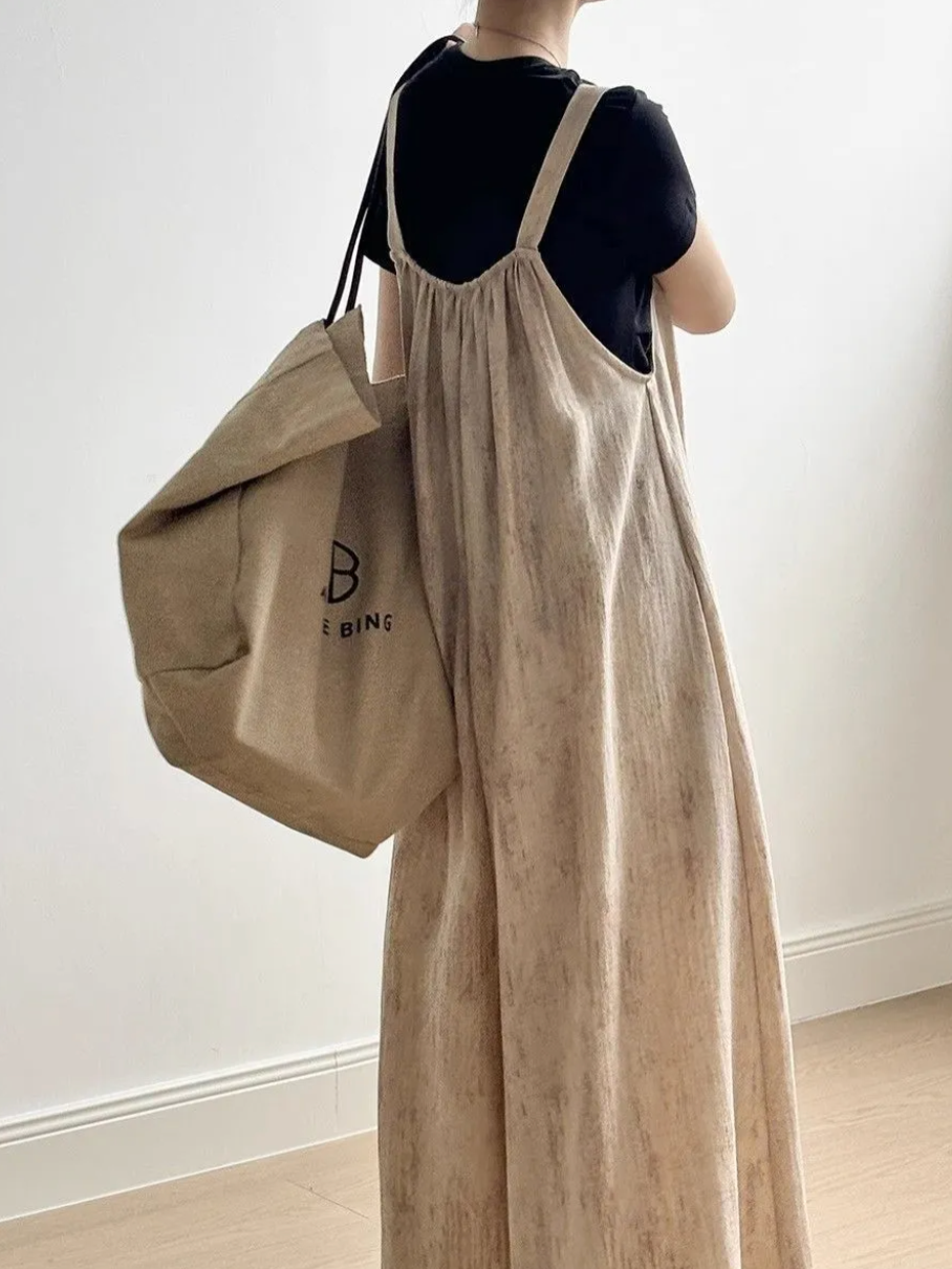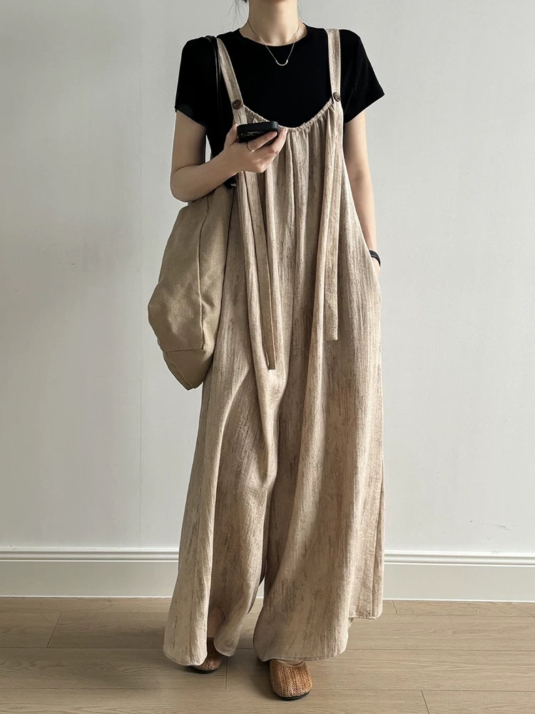 【單件/套裝】日系文藝垂感連體背帶褲短袖兩件套裝