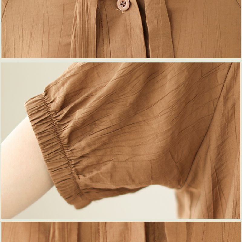 【5色可選】原創日系圓領寬鬆兩袖綁帶五分短袖
