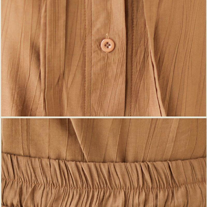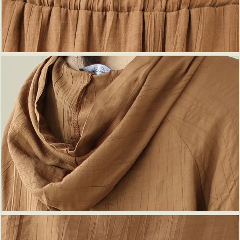 無袖寬鬆度假大口袋休閒卡其A字長版洋裝