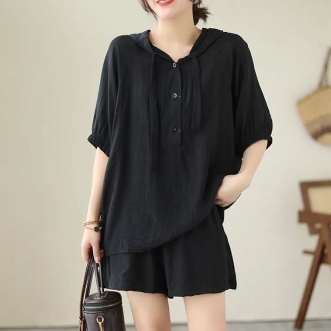【整套】時尚大碼連帽短袖寬鬆顯瘦短褲兩件套裝