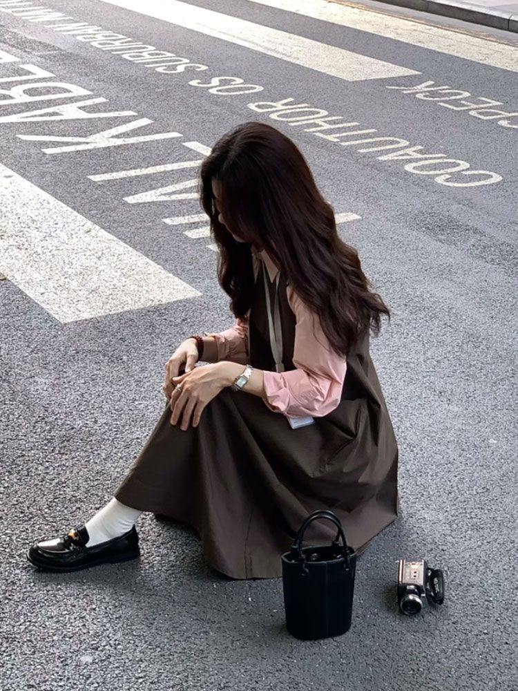 【單件/套裝】減齡長袖襯衫+寬鬆背帶長裙兩件套裝