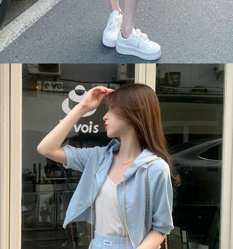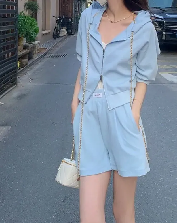 【整套】韓版素色寬松連帽短袖+百搭休閑褲兩件套