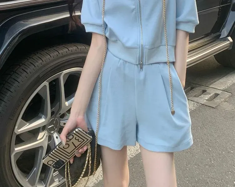 【整套】氣質休閒運動短袖短褲鹽系兩件套裝