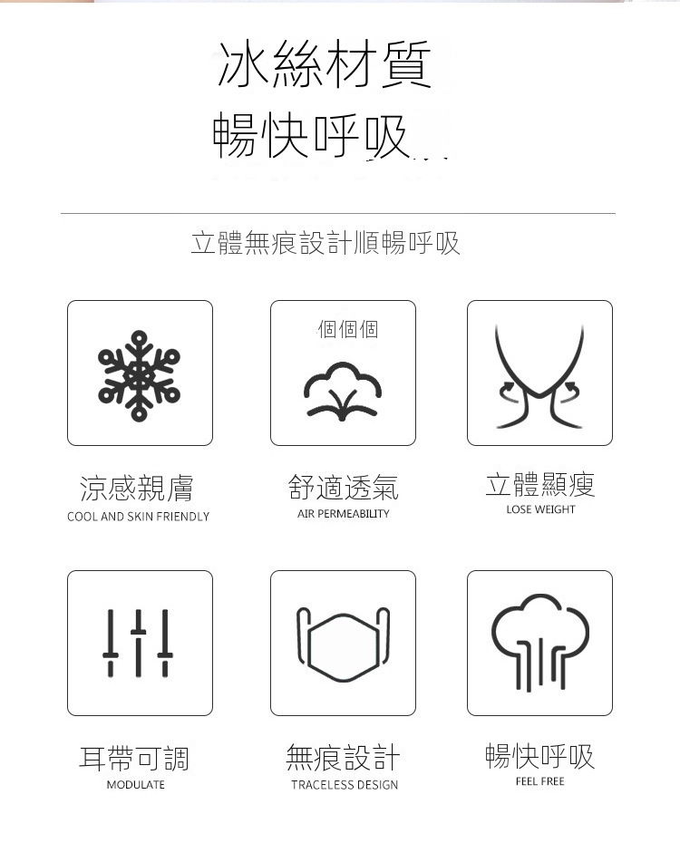 冰感透氣防紫外線遮陽高顏值無痕防曬口罩