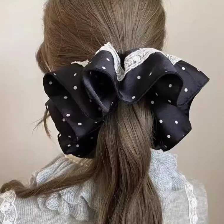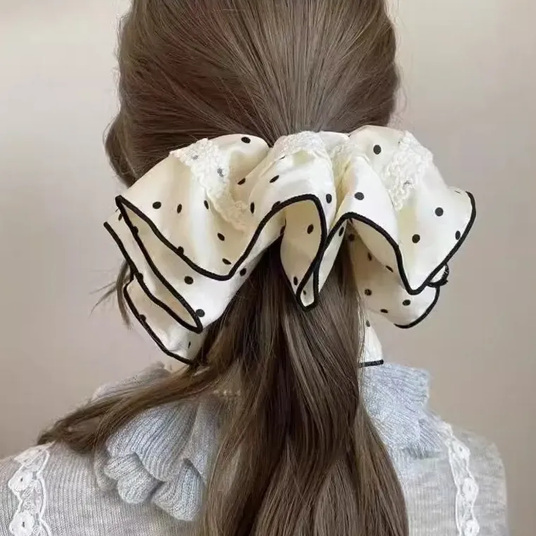 法式復古溫柔氣質高級感黑白波點絲絨髮圈