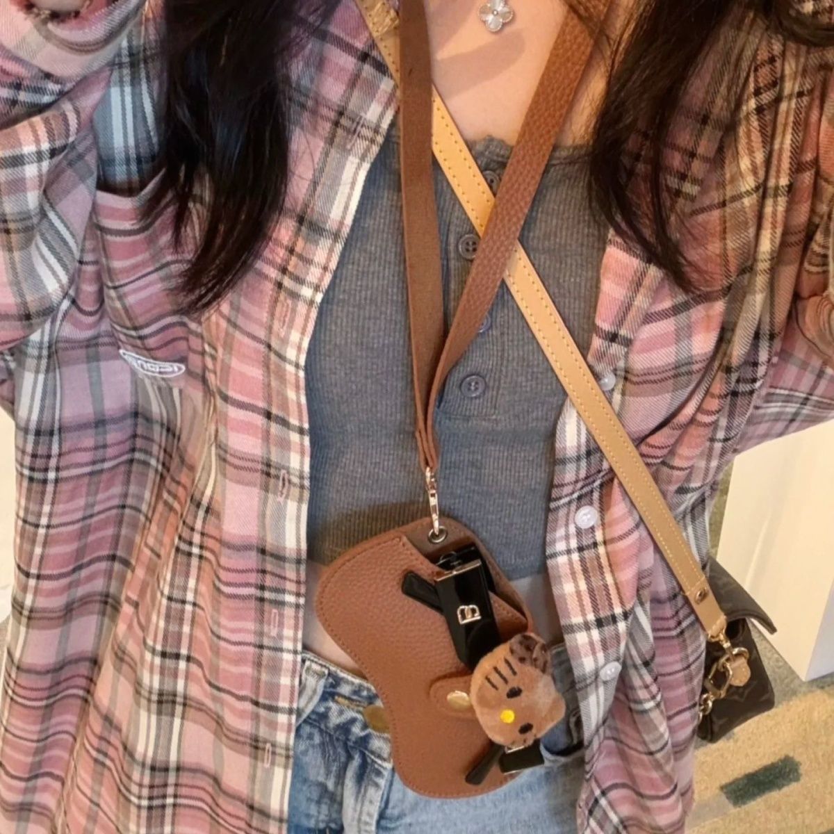 黑皮豹紋kt眼鏡包【掛脖】長繩款