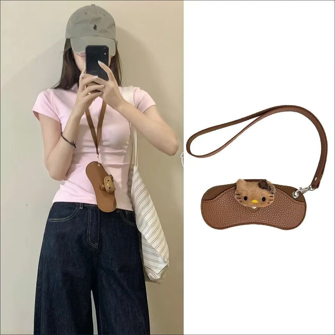 黑皮豹紋kt眼鏡包【掛包】短繩款