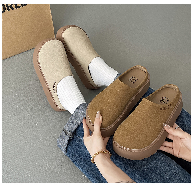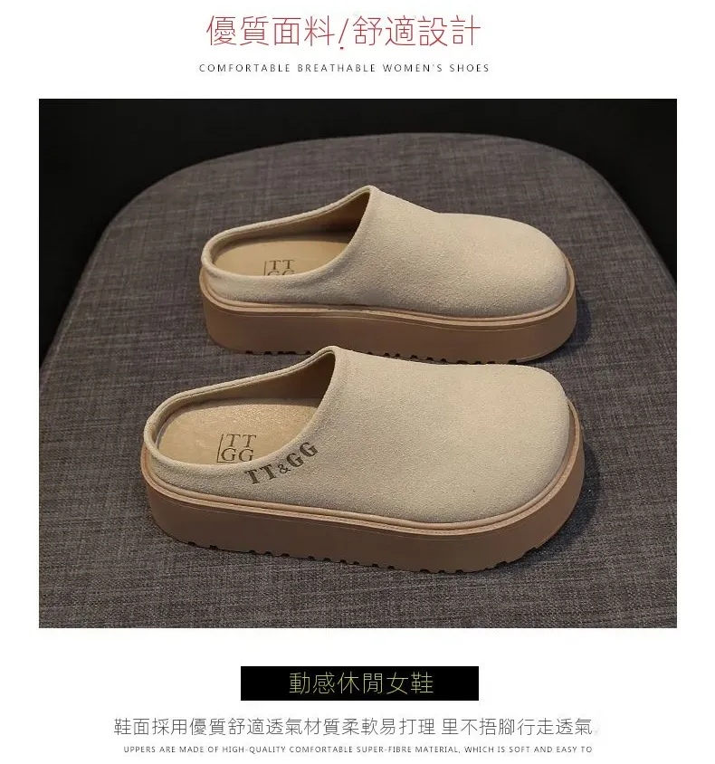 包頭無後跟鬆糕厚底復古脖肯鞋鞋靴